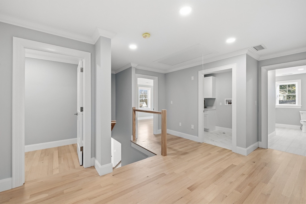 Discover your ideal home at 4 Aerial! This beautifully designed first floor features an expansive layout, including an office, great room with fireplace & cathedral ceilings, a bright & spacious kitchen with ample storage & Thermador appliances, and a welcoming bedroom with a full bath. Enjoy seamless indoor-outdoor living with your private backyard oasis that includes a charming backyard patio nestled next to Sutherland Woods. Upstairs, the primary suite offers ample space with his & her closets- no sharing required! The luxurious primary bath enhances your comfort, while two additional well-sized bedrooms & another full bath complete this level. Quarter sawn oak floors. The lower level boasts a playroom, an exercise room, & a full bath, providing everything you need for relaxation & recreation. Ideally located, you’re just moments away from Wilson Farm, Trader Joes, Route 2, Arlington Heights, and home to Cookie Time Bakery & Roasted Granola. This home is a must-see!