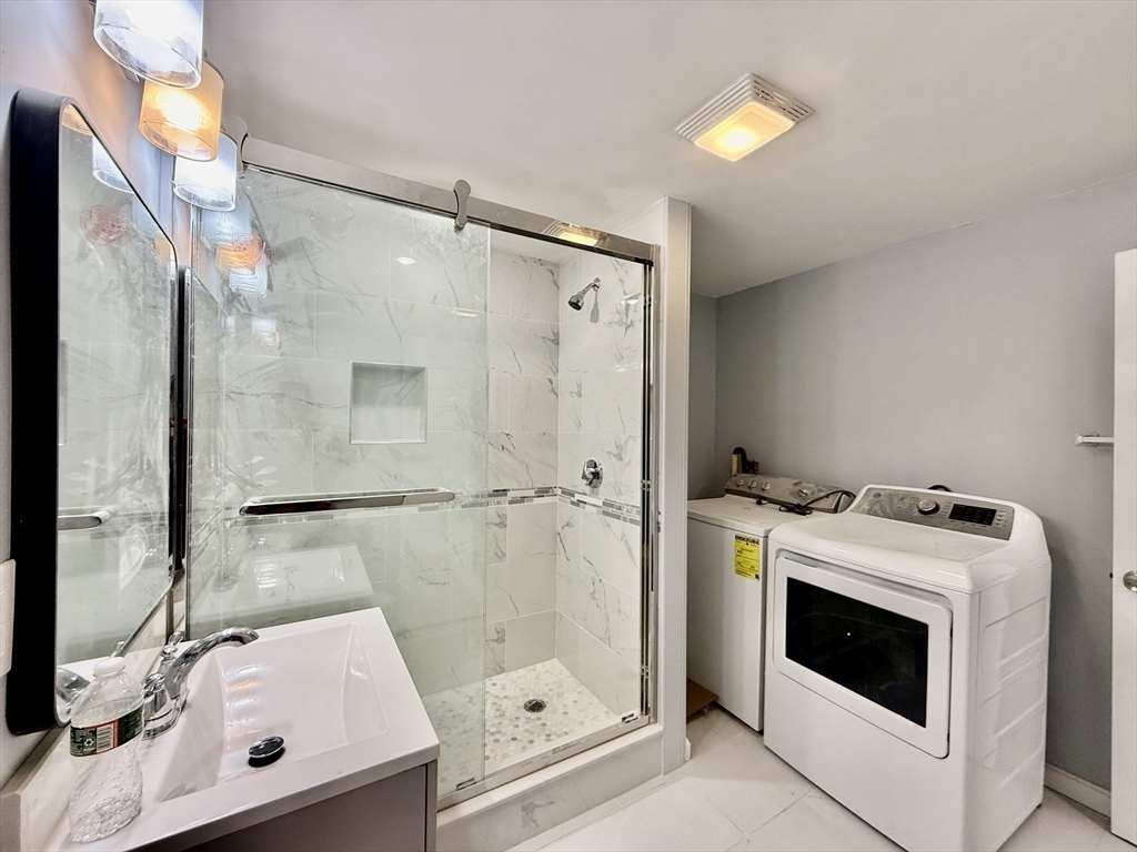 Commuter's Dream Location! Presenting a rare opportunity to own this completely renovated, bright, and open 3-bedroom, 2-bathroom townhouse, located just steps from the MBTA Commuter Rail and a short stroll to the vibrant shops and restaurants of Melrose Center. This stunning first-level unit is turn-key ready, featuring all-new flooring and fresh paint, a beautifully upgraded kitchen with stainless steel appliances, quartz counters, shaker cabinets, and tile backsplash, plus the modern convenience of in-unit laundry. Enjoy the luxurious updates in the bathrooms, including custom tile work and new vanities. Additional premium features include an oversized bedroom with a large walk-in closet, energy-efficient Central AC, and a private back deck perfect for relaxing or entertaining. Don't miss out on this perfect blend of location,OH 12-2pm Sat Sun