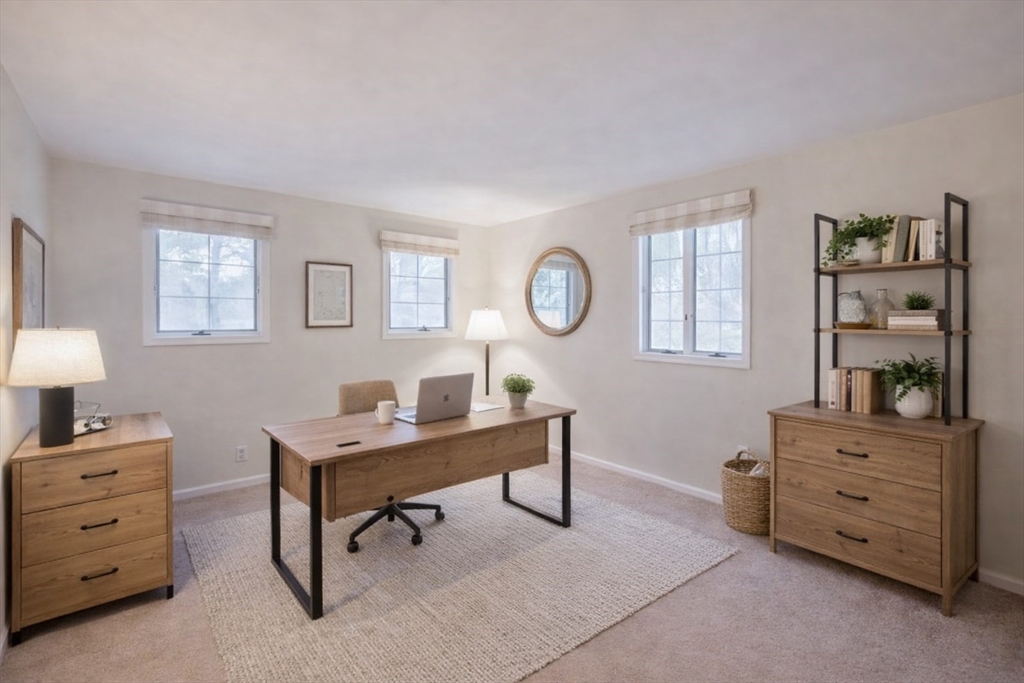 HOA fees drop to $609/month starting March 1, offering an annual savings of approximately $456. Welcome to this spacious condo set in a quiet, private community surrounded by mature pine trees. A sunken living room with two sliders opens to a full-length porch shared with the dining area, creating ideal indoor-outdoor living for relaxing or entertaining. The first floor offers flexible one-level living with a bedroom and full bath. The kitchen features granite countertops and stainless steel appliances with an efficient layout. Upstairs includes a primary bedroom with walk-in closet, a full bath, a second bedroom, and a versatile den with its own slider and private balcony—perfect for a home office or bonus space. A detached one-car garage provides excellent storage and convenience. Enjoy direct access to the walking path leading to Lake Winnecunnet for kayaking, canoeing, and fishing. Seller offering a $5,000 buyer credit toward closing costs.