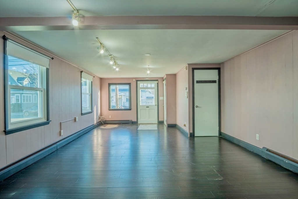Opportunity to own a mixed-used, two-unit property just blocks from the Swampscott commuter rail station and Swampscott's downtown, centered around the historic Monument Square, a charming seaside area known for its coastal character, local shops, restaurants, beaches, King's Beach & Fisherman's Beach, offering a blend of historic charm, seaside living, and proximity to Boston. First floor is an open retail/commercial space with smaller room/office plus 2 half baths and rear exit to parking. Driveway is shared by easement. Second floor is well-maintained, one bedroom apartment featuring living/dining room, large bedroom, hallways, full bath with tub/shower and updated kitchen leading to composite deck/exterior stairs. Apartment has beautiful hardwood floors. Systems updated: FHW baseboard heat & separate hot water tank by gas. Windows replaced throughout. Large, unfinished basement is perfect for storage & includes washer and dryer. Open Houses: Sat 12/13, 12-1:30 & Sun12/14, 1-2:30