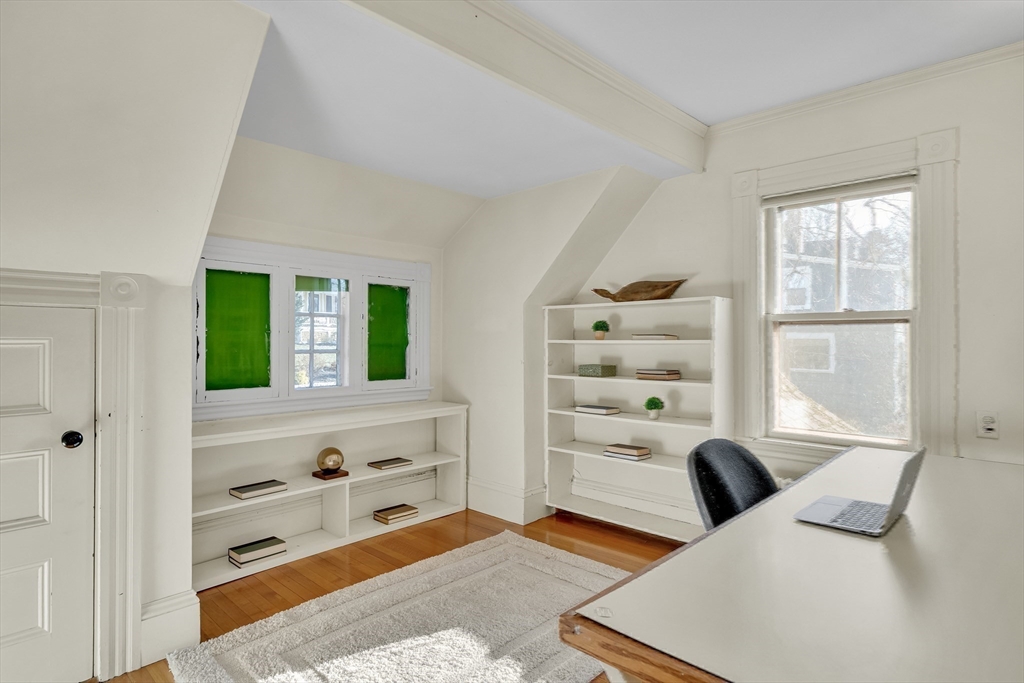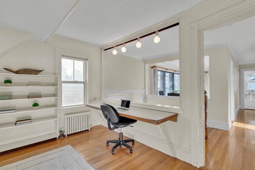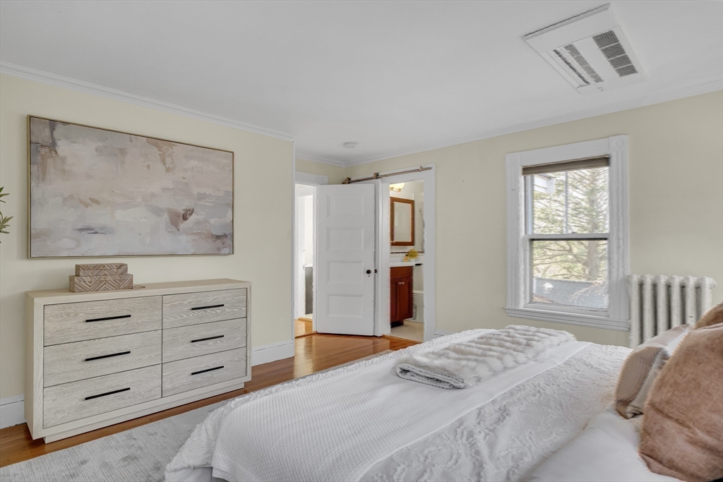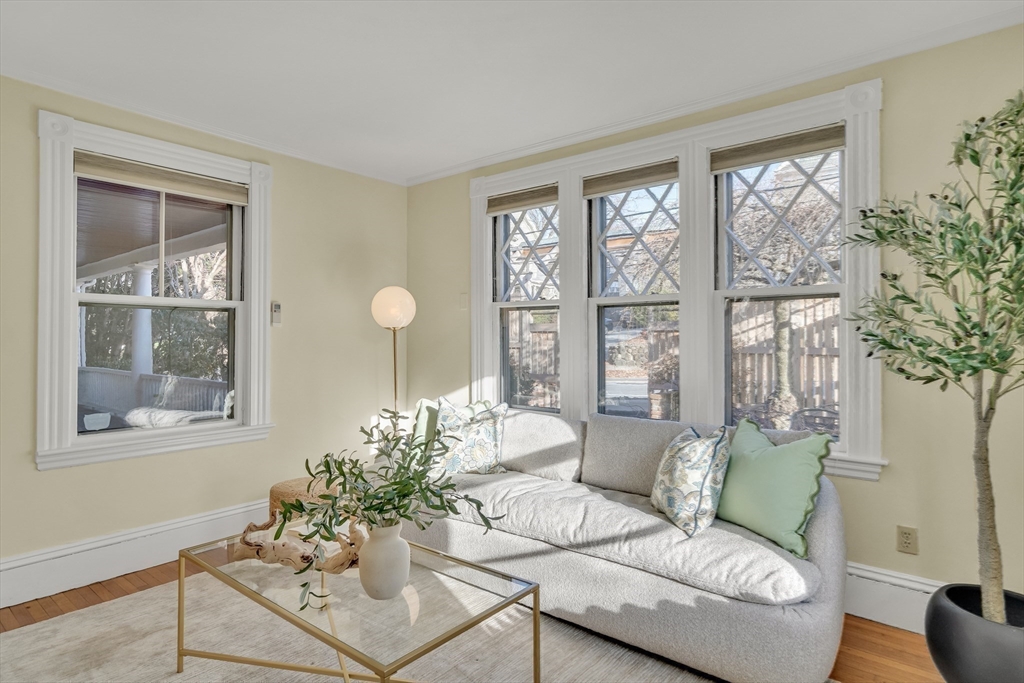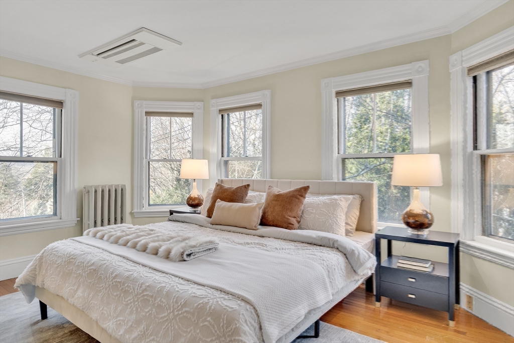 Exceptional Victorian era gem, steps from Town Center, schools, commuter rail, and the Fells! This spacious home seamlessly blends modern elegance with timeless charm. It’s special features include: an inviting farmer’s porch, generous living & dining rooms well-suited for entertaining, 1st floor family room, covered porch for al fresco dining, primary suite with updated ensuite bath, home office, sun room, central AC (8 mini-splits), Lochinvar heating sys (2025), hardwood floors, 3 fireplaces, and more. The stunning kitchen combines function, design, and quality showcasing custom cabinets, granite countertops, high-end stainless appliances, and tasteful lighting. Bring your design ideas for the 3rd floor and personalize the space for your needs. The lower level, with an outside entrance and a half bath, is well suited for an in-law suite, or au pair accommodation. The lovely backyard with its Zen Garden includes many thoughtfully organized plantings and flowering trees. Welcome home!