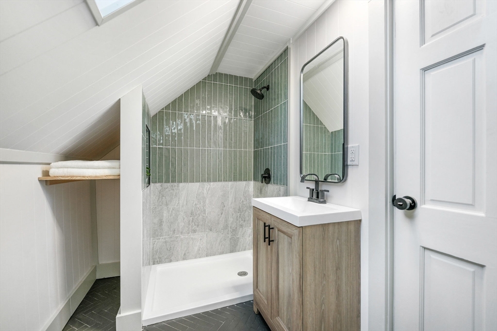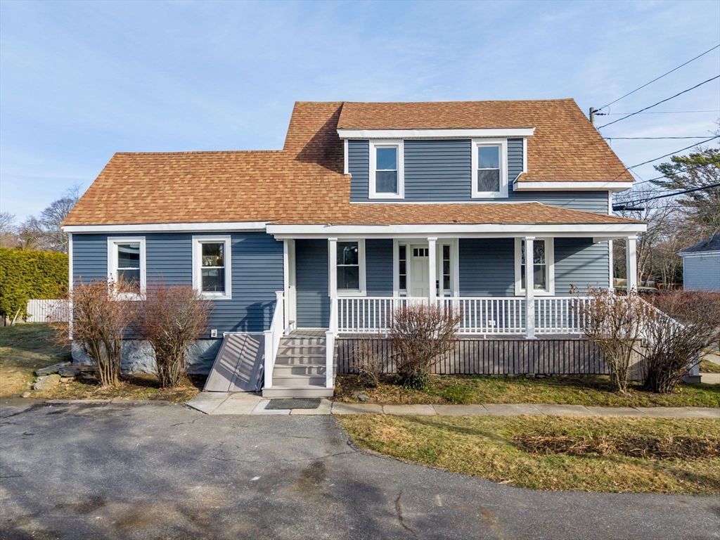 This updated three bedroom, two bath home with large garage is located in the quaint town center and just steps from the bike path, marina, and historic Fort Phoenix. A welcoming covered farmers porch leads inside to hardwood floors, a spacious living room with a large picture window, abundant natural light, exposed wood ceilings, and a cozy fireplace. The fully remodeled open kitchen features quartz countertops, an island perfect for entertaining, and access to the back patio. Additional highlights include a formal dining room, first-floor laundry, two newly renovated bathrooms, and three bedrooms with an abundance of storage. New windows, newer roof, heating system, plumbing, electric, siding, flooring and garage door with electric opener all complete this beautifully updated property. This charming home blends old character with modern updates as well as close proximity where you can enjoy tennis courts, beaches, and scenic walking trails.