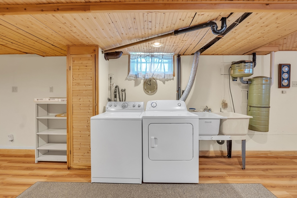 Do not miss this charming, move in ready three bedroom ranch, perfect for first time buyers or anyone looking to simplify their lifestyle. Step into a bright and welcoming living room with a cozy fireplace that opens seamlessly into the dining area and kitchen. Down the hall are three inviting bedrooms and a full bath. Relax in the three season sunroom with direct access to the deck and backyard. The partially finished basement offers fantastic bonus space for a playroom, home office, or recreation room, along with additional storage. Enjoy peace of mind with a Buderus boiler and a newer oil tank. Outside, the property features a carport and a spacious backyard with a storage shed, ideal for outdoor entertaining and activities. A wonderful opportunity that will not last.