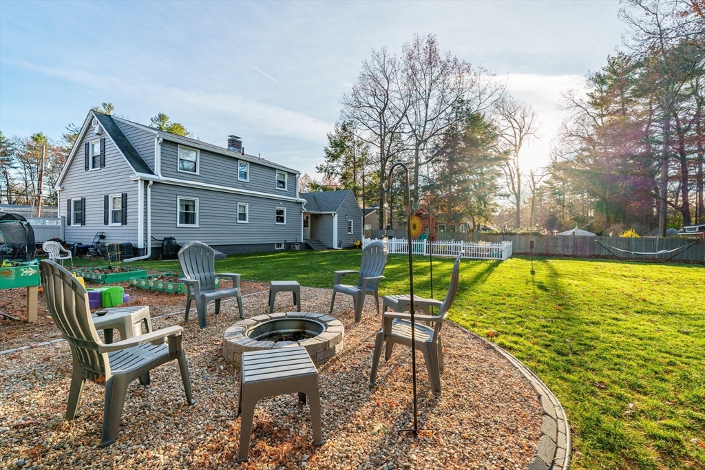 An oasis in the heart of Westford's Nabnasett neighborhood. Step into a private backyard retreat with a firepit and play area within a spacious, well maintained lawn. Enjoy the area by taking a brief stroll down the sidewalk to enjoy the town tennis and basketball courts and sports fields or heading over to the Ronan McElligott Playground and Edward's beach that are only a 1/2 mile away. This updated cape has a modern kitchen, oversized bedrooms and abundant natural light creating a bright and airy space for rest and relaxation. The 2nd floor bedrooms share a 4 piece bath featuring a stand up shower and jacuzzi bath. The downstairs bedroom looks out on the backyard and is in a quiet corner of the house, set back from the main living area. The first floor bath has a beautiful updated walk in shower. The basement provides extra space with full height ceilings and finishing potential. Hardwoods are featured throughout the home including the 2nd floor and the living and dining rooms.