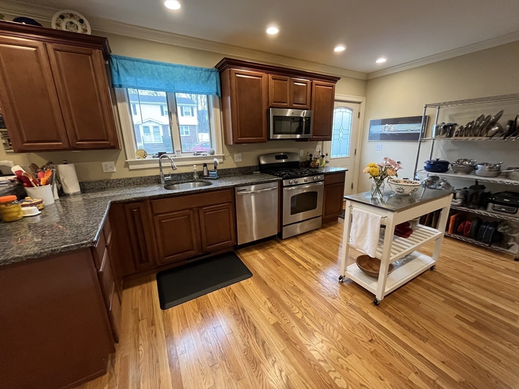 Completely renovated 2+ bedroom townhouse with open layout and great off-street parking. Two large bedrooms plus additional room well-suited for home office or children's room. Stainless steel appliances, granite counter-tops and washer/dryer hookups in unit. Well maintained property with big side yard and good outdoor space. Hardwood floors in kitchen, living and dining areas. Basement has ample space for storage. Unit has been treated for lead paint; owner has Letter of Full Compliance. Video tour available upon request.