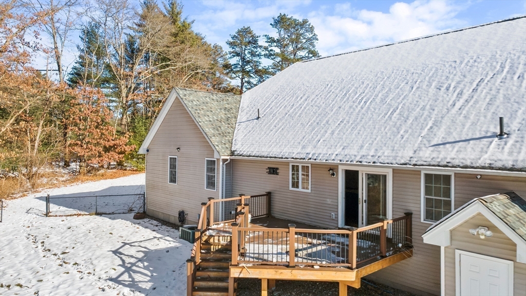 Beautifully maintained 3-bed, 2.5-bath ranch on 1.68 private acres with major updates already in place. Built in 2010, this home features wood floors, cathedral ceilings, great natural light, and a 13×5 pantry. The primary suite offers a 10×8 walk-in closet and double-sink bath. The walkout basement includes 300+ sq ft of finished space, with the remaining area framed and insulated for future finishing, giving you room to grow. Recent improvements include a newer roof, gutter guards, appliances, solar panels, WiFi capable sprinkler system, a 500-gal underground propane tank, tankless hot water, and an above-ground pool added in recent years. Outside, enjoy a composite deck and a private setting that feels tucked away yet convenient to town. A standout mix of comfort, updates, and long-term value