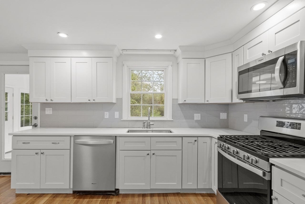 Fully renovated in 2025! Large level lot with a big yard located across the street from the Annie Sargent elementary school, Hardwood flooring throughout the main level, spectacular new Kitchen and 3 baths that have all been beautifully renovated. Kitchen boast stainless appliances, gas cooking, and gorgeous granite counters! Four generous bedrooms all with hardwood flooring, and a large finished lower lever with a Family Room, Mudroom, half bath and laundry. Two wood-burning fireplaces and attached two car garage. Great value with most everything NEW. Close to the Old Center and town Common, easy access to highways and shopping. Central AC, Gas heat, Town water and sewer. First, Last and Security deposit required. Available immediately. Pets negotiable.