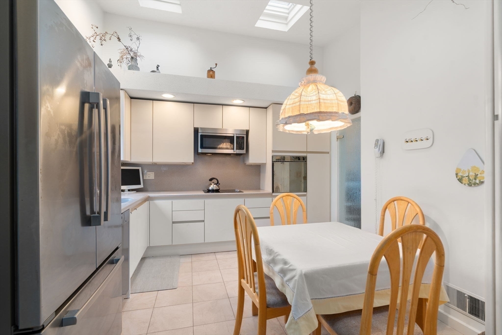 Discover refined suburban living at 21 Knight Rd, a beautifully maintained Mid-Century Modern, split level set on a private 0.48-acre lot in one of North Framingham's most desirable neighborhoods. This 3 bed, 2 bath home blends timeless design with modern comfort. The inviting main level features large picture windows, a sun filled living room w/fireplace and seamless flow to the dining room. An updated chefs' kitchen features Gaggenau, Miele & Bosch ss appliances, breakfast nook & skylights. The sunroom with wood/coal burning stove opens up to an expansive deck. 3 spacious bedrooms provide serene retreats; the primary features a balcony overlooking the backyard. The finished lower level provides valuable living space for bonus rm/home office, a full bath & separate entrance to the backyard. The basement provides ample storage & laundry rm. Outdoor living shines here! Mature landscaping, multi-level deck, patio, stone wall, garden & shed. This home offers luxury, lifestyle & location!
