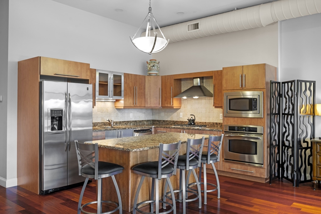 Welcome to Surfside Lofts—an oceanfront residence blending modern luxury w/Manhattan-inspired design. This meticulously maintained front-facing unit offers spectacular Atlantic Ocean views through floor-to-ceiling Pella windows, enhanced by soaring 11-ft ceilings that fill the unit w/natural light. The custom kitchen features a chef’s cooktop, SS appliances, granite countertops, sleek cabinetry, & an oversized island w/seating for 4. The open concept living area showcases Brazilian Cherry hdwd floors & provides a provides a flexible layout to suit any lifestyle. Additional highlights include a Zolli bathroom vanity w/Kohler fixtures, in-unit stackable washer & dryer, generous storage, & off-street parking. The building offers extra storage & a TV-monitored security system for added peace of mind. Located just minutes from Beachmont & Revere Beach Stations, Logan Airport, shopping, dining, & historic Revere Beach—America’s first public beach. This exceptional unit is truly a must-see!