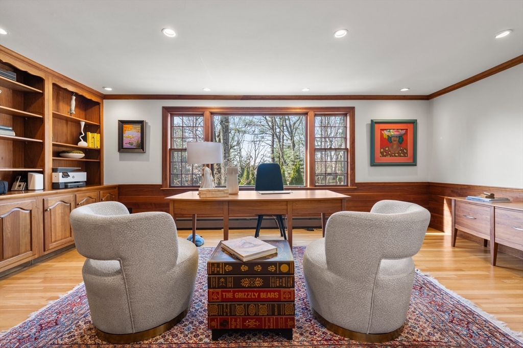 A rare offering in Wellesley—this nearly one-acre private, park-like property features quality outdoor living and an elegant brick-front colonial. Professionally landscaped grounds frame a spacious patio, sweeping lawn, and year-round heated pool, creating a true backyard sanctuary. Inside, the home showcases a classic formal fire placed living room and dining room. Luxurious open-concept kitchen and family room. Highlights include top-tier appliances, A dramatic wall of sliding glass doors along the kitchen and dining area blends indoor and outdoor living for effortless entertaining.The second floor offers six generous bedrooms plus a versatile bonus space ideal for work, play, or guests. The finished walk-out lower level features a full bath, theater and gym. An exceptional combination of space, privacy, and convenience—just moments to schools and major commuting routes. Luxury living at its finest in Wellesley.