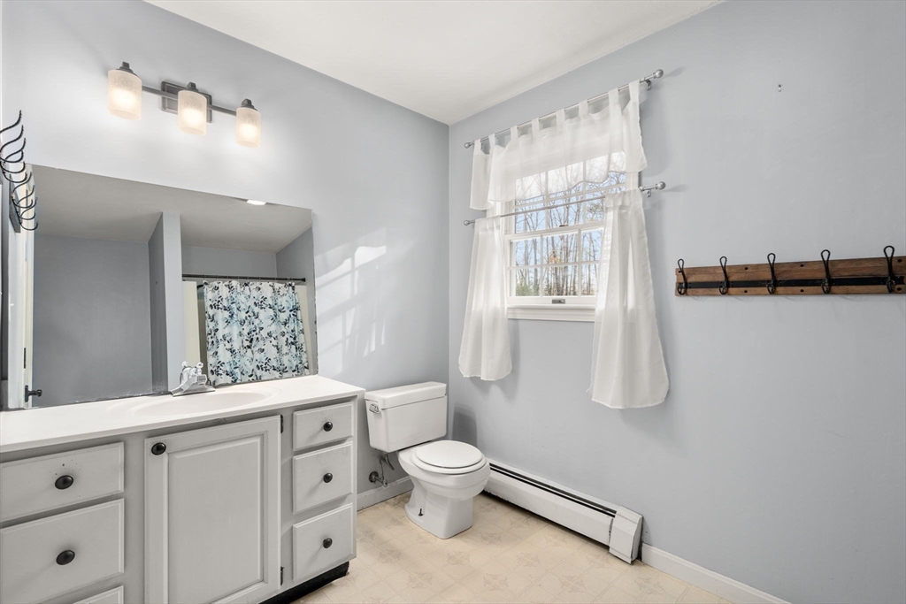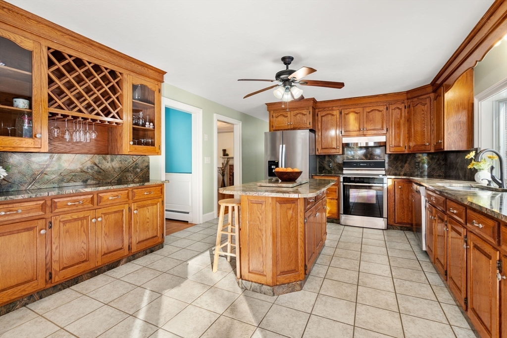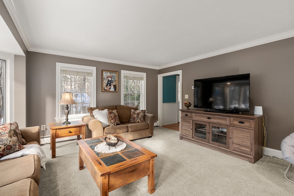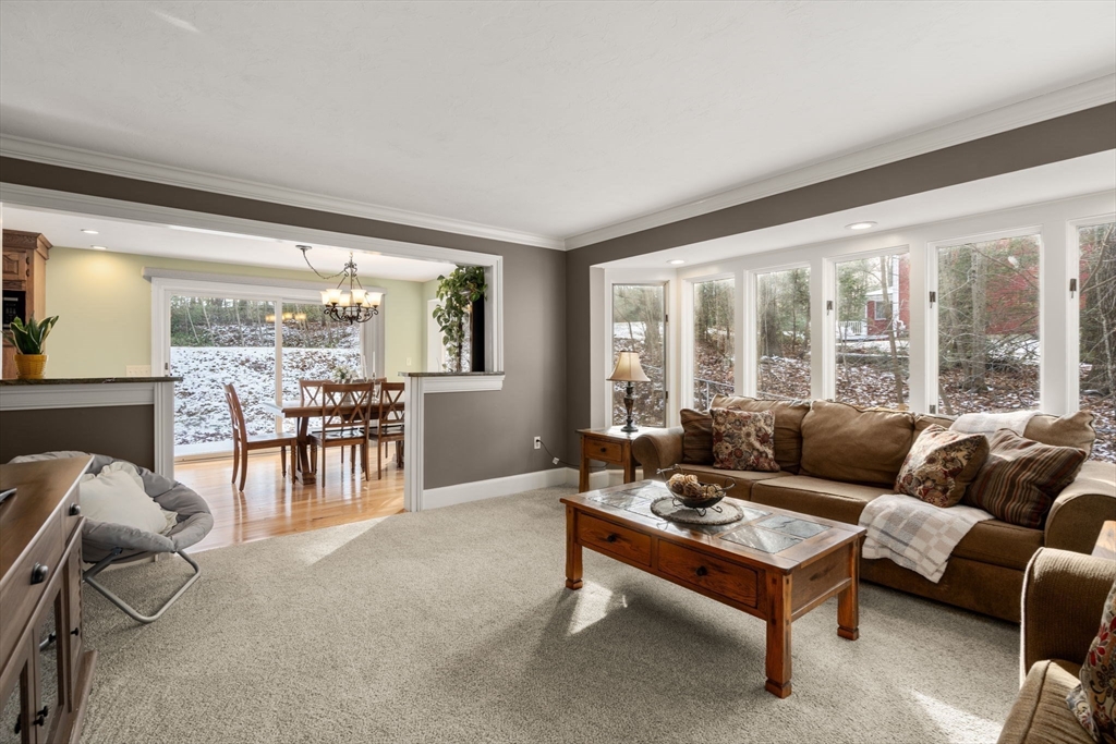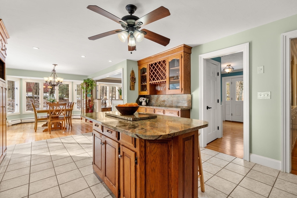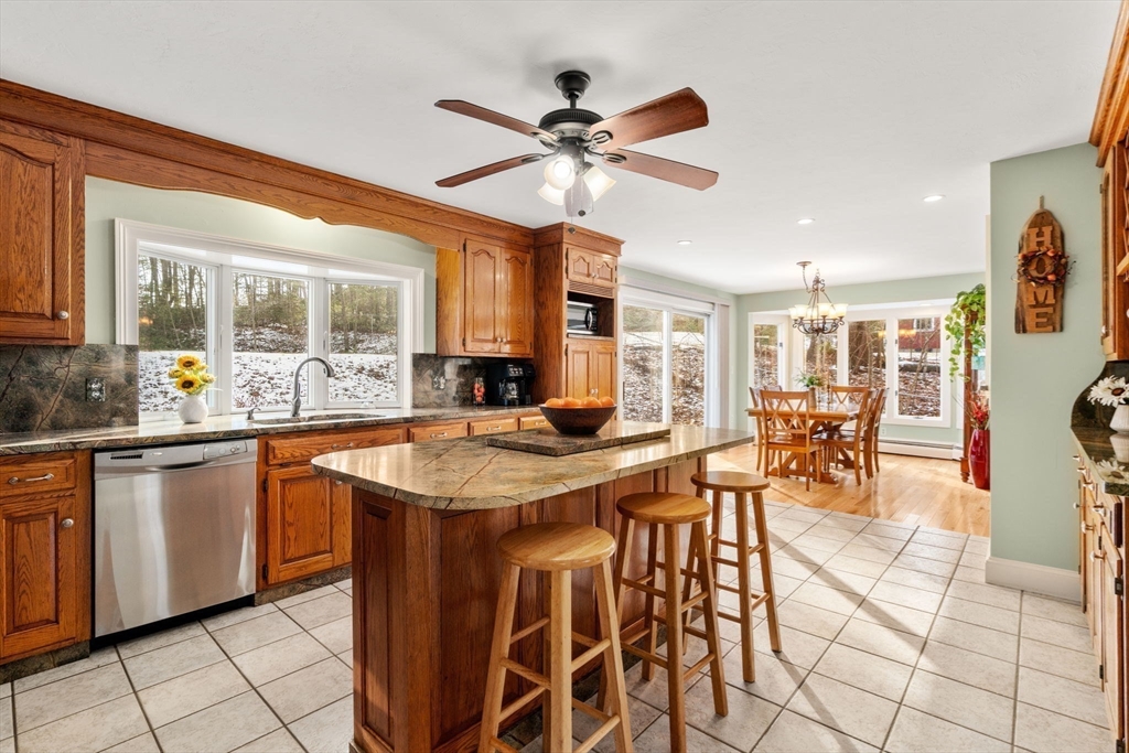 Picture perfect and spacious colonial with deeded rights to South Pond, plus an in-law apartment! Surrounded by the beauty of nature yet minutes to major routes and the center of town. Enter to find a warm and inviting open concept space with beautiful hardwood floors. The cabinet packed kitchen features granite countertops, a center island, and stainless steel appliances and is adjacent to a sunny eat-in dining area with exterior access. The living room features a gorgeous wall of windows with newer flooring. A dining room and half bath w/ laundry complete the first floor. Upstairs, you'll find 4 generously sized bedrooms, 2 full baths, and a primary suite with a huge closet. The basement features an impressive theater room, bar, and more - perfect for entertaining! 3 yr old roof, 2 car garage for more storage. The separate apartment above offers a full kitchen and bath, plus an open concept living space. Sturbridge offers top rated schools, immediate proximity to I-90 and I-84.