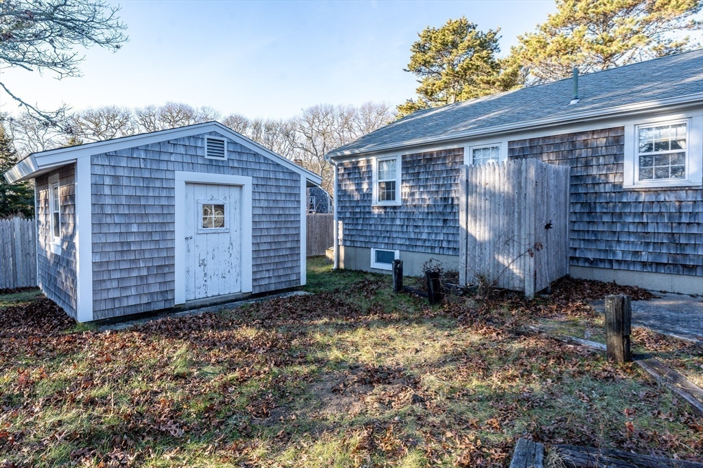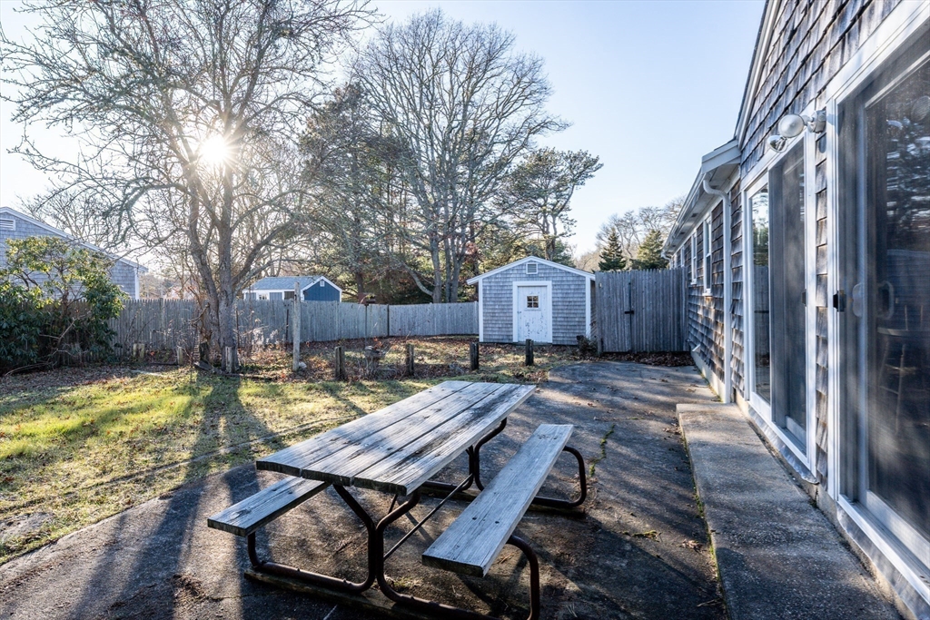 Welcome to 15 Yenom Road, a warm & inviting home located just outside the Dennis Historical District! Nestled on a quiet cul-de-sac, this charming, well-loved home has been held by the same owners for over 50 years. Featuring hardwood floors (including under carpet), a comfortable living room with a wood-burning fireplace, and a bright, eat-in kitchen. The living space is enhanced by a large, light-filled family room with a cathedral ceiling that opens to a private, fenced backyard with a patio and outdoor shower. Additional features include an oversized one-car attached garage and a full basement with interior/exterior access, laundry hookups, and a particle cedar closet, offering ideal potential for a rec room. Although dated, this home has been lovingly maintained and offers great value as it awaits your personal updates. Conveniently located near some of Cape Cod's best beaches, conservation area, shopping, and activities. Don't let this one get away!