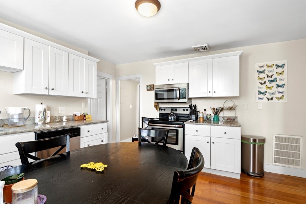 Charming second floor condo in Harvard Center. This 2 bedroom unit features wood floors throughout. The eat-in kitchen has upgraded granite counter tops, stainless steel appliances and a stacked washer & dryer. This building was fully renovated in 2012 and many improvements have been made by the owners' association. Specific improvements include a new roof, a fully paved parking area, a whole house generator and new sidewalks. The common area includes spacious front porches and yard. Unit includes basement storage space and two parking spots. Rare opportunity to live in historic Harvard Center. Easy walk to Bare Hill Pond, Schools, Library and the General Store.