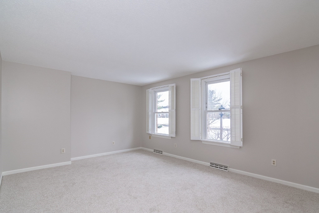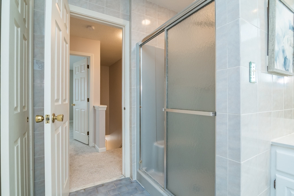 Highly sought after Castle Hills End unit , 2 Bedroom 1 1/2 bath Condo is MOVE IN READY! Brand new hardwood flooring and wall to wall carpeting, brand new oven/range, newer refrigerator, microwave and dishwasher. Freshly painted to make it feel like new! End unit offering privacy and peaceful living. Large windows with shutters for light and privacy. A Fireplace and crown molding finish off the living room which is open to view the dinning room and sunken family room. Family room has large windows with new Anderson sliders open to a deck with a gas grill for your enjoyment. Comes complete with an awning to prevent sunburns while you sit and enjoy the view of the woods. Primary bedroom has large closets and full size bath with shower and separate tub and linen closet. Unfinished large basement can be finished as you desire for more entertaining and living space or extra storage.Hypo allergenic air filter stays. MUST SEE and start packing to be in for New Years! This one wont last!