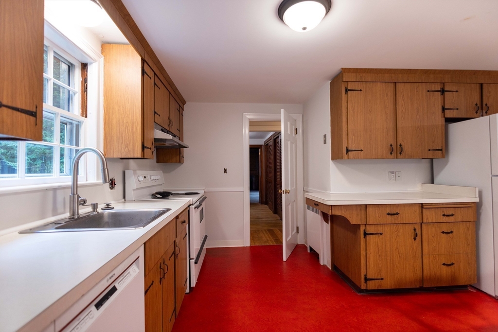 Discover the inviting residence located at 195 Dover Rd, Westwood, MA. This single-family residence is ready to move in. The living room presents a warm and comforting atmosphere, featuring a fireplace perfect for cozy evenings, along with crown molding that adds a touch of elegance to the space; the beamed ceiling and wood wall create a unique and inviting ambiance, while the built-in shelves provide practical storage and display options. In the kitchen, the large kitchen island offers ample space for meal preparation and casual dining, complemented by a kitchen bar, ideal for entertaining guests. This property also features a laundry room for your convenience. Living area of 1962 square feet, this home, built in 1947, includes four bedrooms and one full bathroom, as well as one half bathroom. It benefits from a two-car garage. Embrace the chance to make this delightful Westwood residence your own.