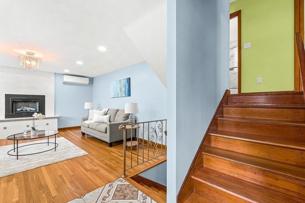 Welcome to 35 Fells Ave Terrace, a spacious and updated Medford home offering five finished floors, five bedrooms, and three updated bathrooms. The main level invites you in to an updated kitchen featuring stainless steel appliances, a welcoming dining room, and a cozy living room anchored by a fireplace and picture window. The finished basement adds comfort with a family room centered around a second fireplace and a convenient laundry area. The lower level offers exceptional flexibility with its own bedroom, bathroom, kitchenette, and direct access to a walkout enclosed patio. Ideal for in-law suite or ADU unit. The top two floors each provide two well-sized bedrooms and an updated bathroom, giving everyone room to spread out. Throughout the home, enjoy recessed lighting, mini splits, tankless hot water and heating, and a fenced yard. With an attached one-car garage and thoughtful updates throughout, this home blends warmth, space, and versatility in an ideal Medford location
