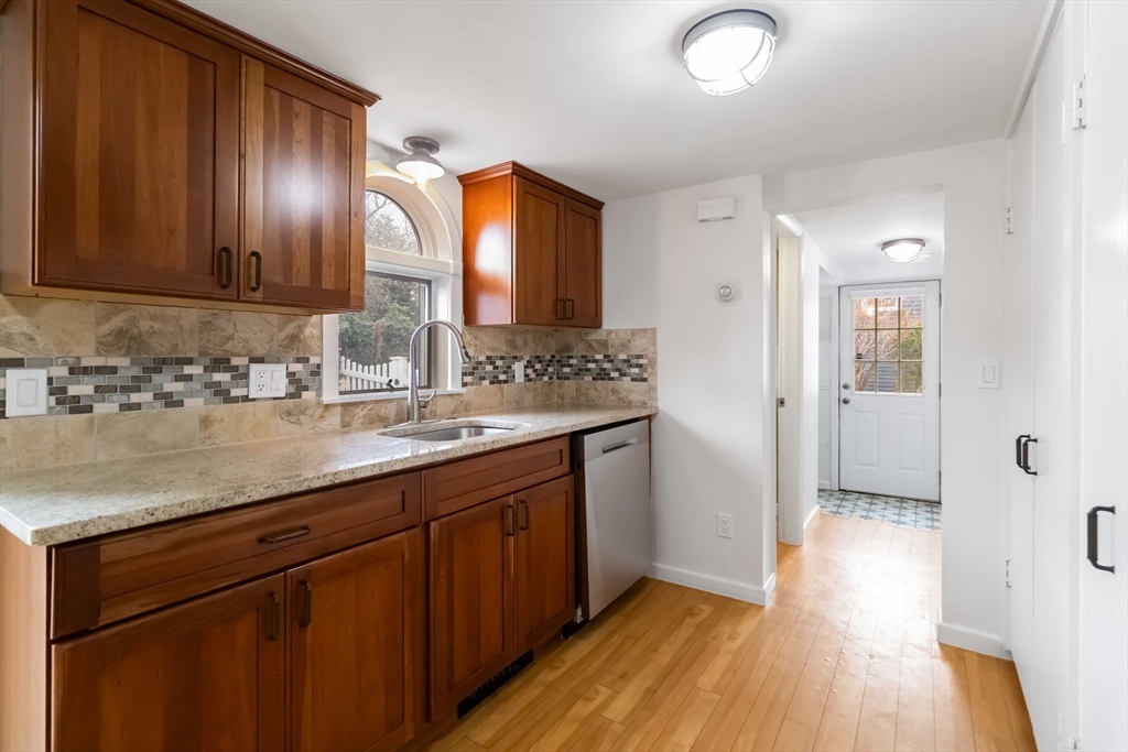 Well maintained Victorian townhouse style 2 bed 1.5 bath condo located in the heart of downtown Natick. This is 1 of 2 units w/ the property sitting on a corner lot. Driveway access is on Maple St. Renovated kitchen w/ natural cherry cabinets, granite counters, gas cooking, stainless appliances. Sliders off the kitchen to a private deck, patio space and fenced in yard are a perfect space for grilling and relaxing. Laundry room on the main level along w/ a half bath for added convenience of living. The second floor level offers 2 generous size bedrooms and a renovated bath with heated tile floor. A welcoming front porch and professional landscaped grounds rounds off this home. Heating & cooling provided by recently installed mini-splits in each room. The unfinished basement offers some storage space. Great location in town close to Natick's vibrant center, including the Common which hosts several yearly events, TCAN, the Commuter Rail, shops, restaurants, coffee shops & more.
