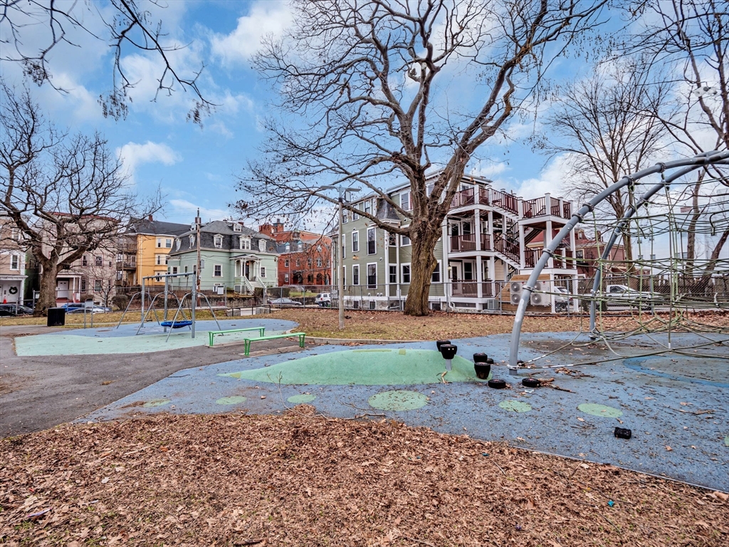 This gut rehab luxurious bi-level condo in Moreland St. Historic District offers 3 ways views of Scoby Park and is within walking distance to Nubian Square, South End, and Boston Medical/Northeastern University. A Perfect Blend Of Classic Element & Modern Conveniences. Interiors are bright, open concept living with white shiplap walls and high ceilings. Designer kitchen with white cabinetry, stainless steel appliances, and quartz counters. Three potential sleeping quarters. Modern baths with marble showers, soaking tub seamless glass showers, and radiant heat. Central A/C and Lutron LED lighting. Washer and dryer Combo Included. Outdoor deck and cobblestone patio, beautifully landscaped. Impeccable stonework and detailed finishes. Includes two off-street parking spaces. Incredible value designed for discerning professionals unwilling to compromise on quality.