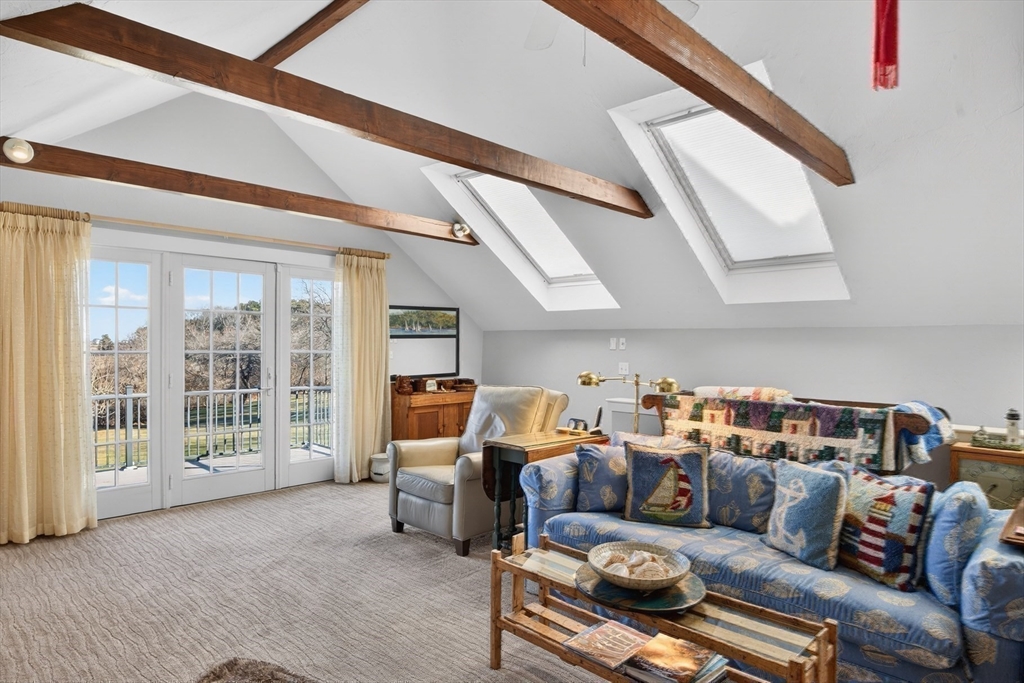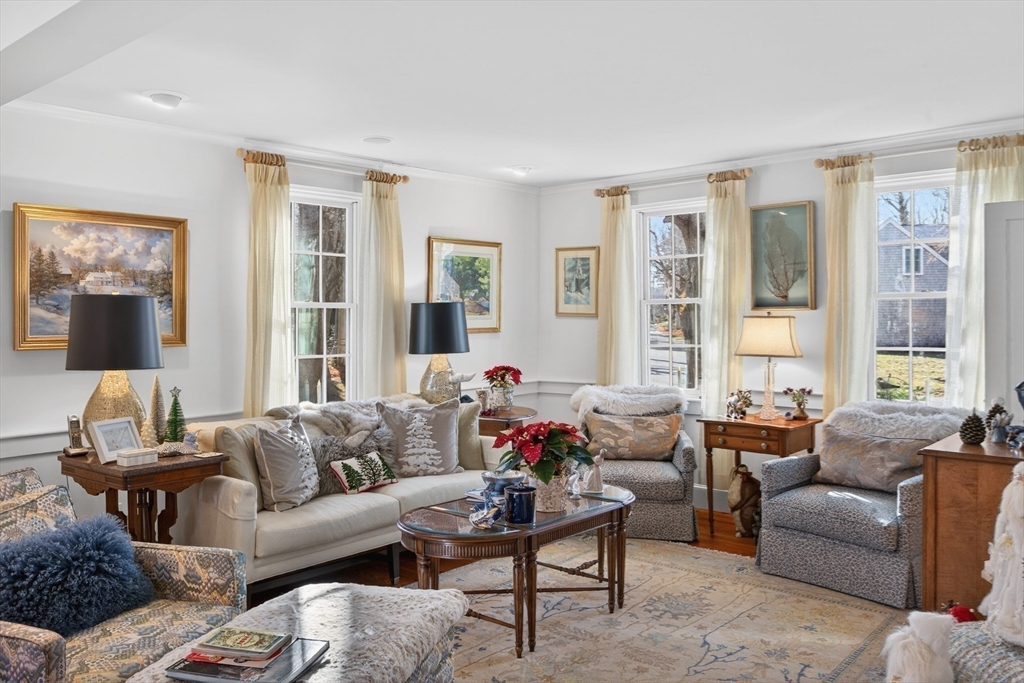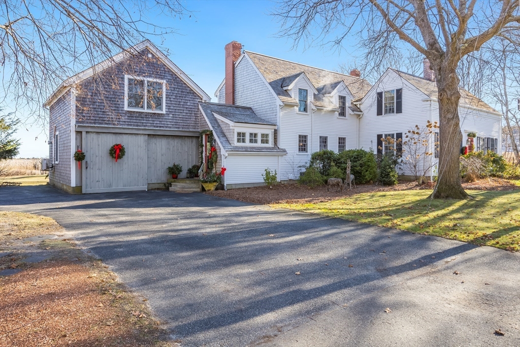 Views - Views - Views - expansive views of the saltwater tidal marsh, sand dunes at Town Neck Beach and Cape Cod Bay. A treasured gem along the coast in Historic Sandwich Village near the famous Boardwalk and Main Street. Built 1856, expanded, and recently renovated with attention to detail, this Colonial is filled with architectural features that combine yesteryear's nostalgia and today's conveniences. Stunning views from the chef's kitchen with a wall of glass, cozy fireplace and dining area with slider to deck. The living room boasts a gas fireplace, slider to patio, built-ins and plenty of room to gather. A custom staircase leads to four bedrooms - each with it's own character - the luxurious primary en-suite has cathedral ceiling, gas fireplace, slider to balcony to experience ever changing views, and private bath. The family room over the garage is an ideal retreat with cathedral beamed ceiling, half bath and slider to another balcony to capture the views. A rare opportunity!