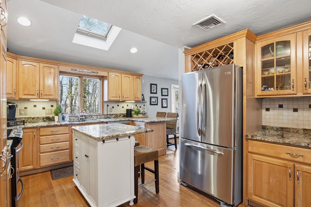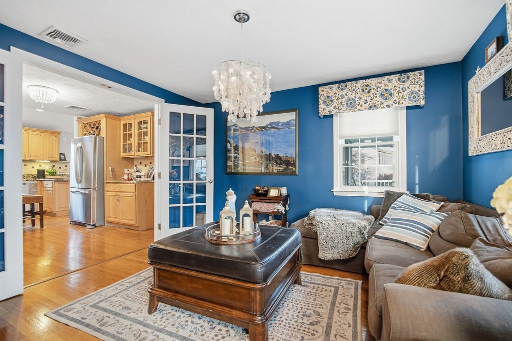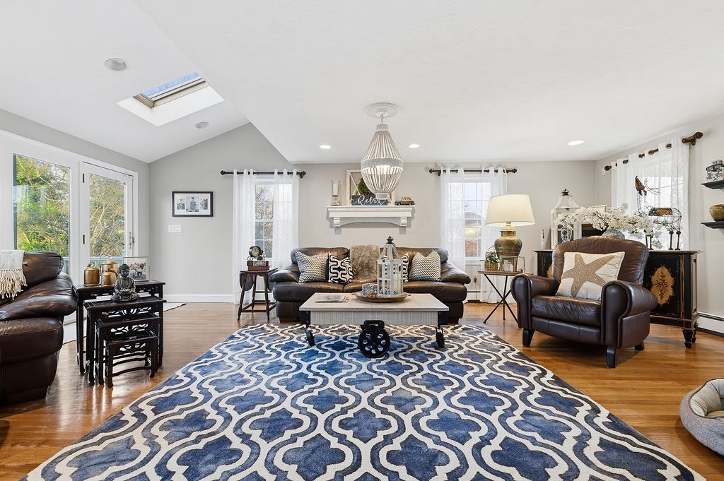 Impeccable 4 br, 2.5 bath garrison colonial in one of Braintree's finest neighborhoods, features include updated kitchen w center island, formal dining room and formal, fireplaced living room, spacious family room with french doors to a tiered deck overlooking a private and spacious backyard, hardwood floors, finished family room in lower level with walk out, central air, newer roof