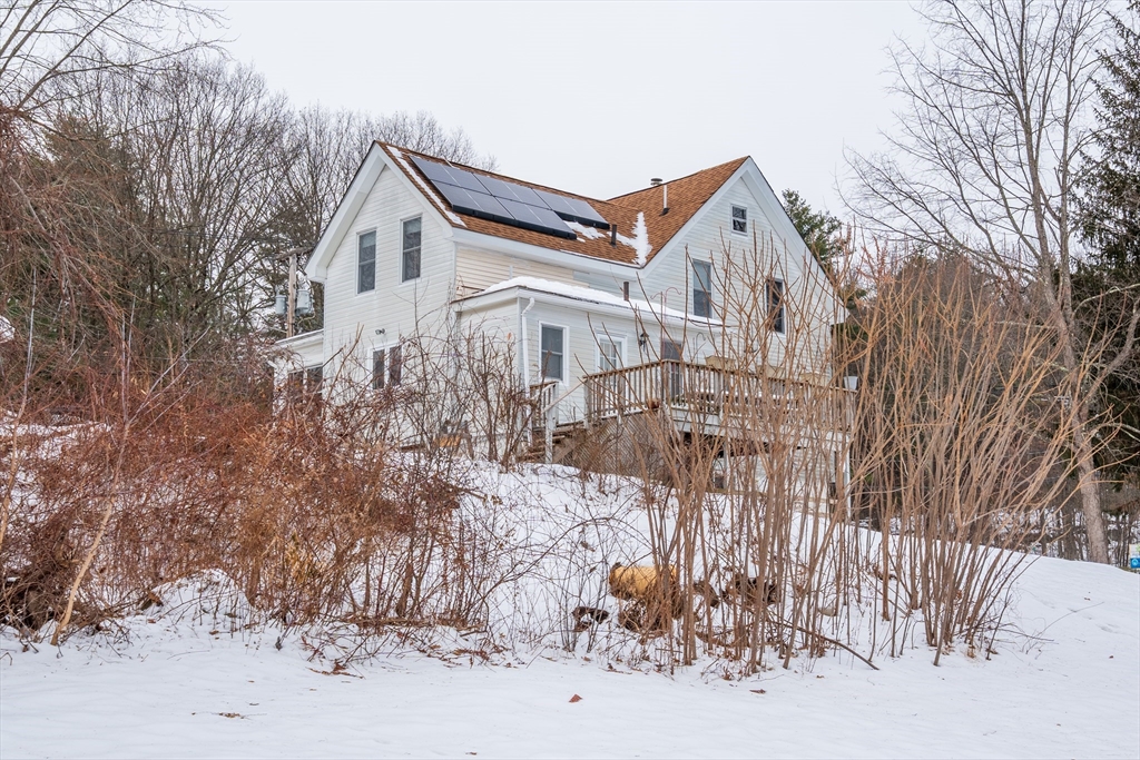 Welcome to this classic New England Colonial Farmhouse offering strong bones, flexible space, and an excellent commuter location. Just 2 minutes from Route 2, this home is ideal for first-time buyers or commuters seeking easy highway access while staying close to local amenities. Minutes to downtown Fitchburg and close to a nearby shopping plaza with grocery, dining, and retail options. Inside, the home features hardwood floors throughout, tile baths, high ceilings, and great natural light. A full dining room, eat-in kitchen with ample counter space and potential for an island, first-floor laundry room, and enclosed front entry add everyday comfort. The walkout basement includes two finished bonus rooms and a gutted bathroom ready for completion, potential to restore the home to 2.5 baths. Outside offers a back deck and a detached two-car garage. The home offers an opportunity to update and personalize. Leased solar panels help offset electrical costs. Strong value with future upside!