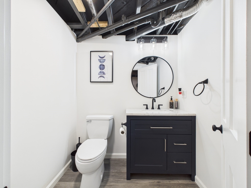 This Charming three-bedroom home offers hardwood floors throughout the bedrooms, a cozy fireplaced living room and a fully finished basement that was designed with exceptional taste and attention to detail. With one and a half baths and over an acre of land, there's plenty of room to relax, entertain and enjoy the outdoors! This house is also outfitted for a whole-house generator, perfect for these New England winters.