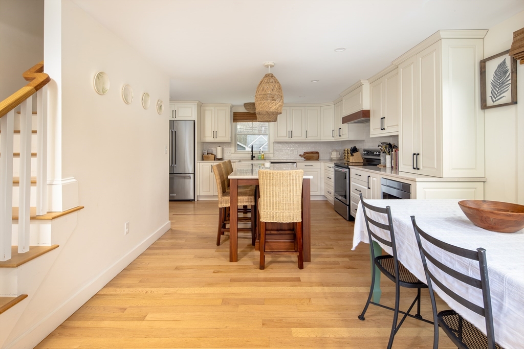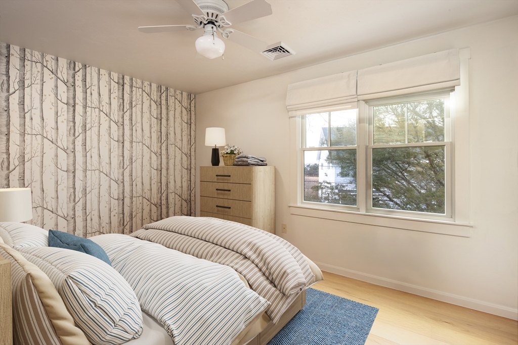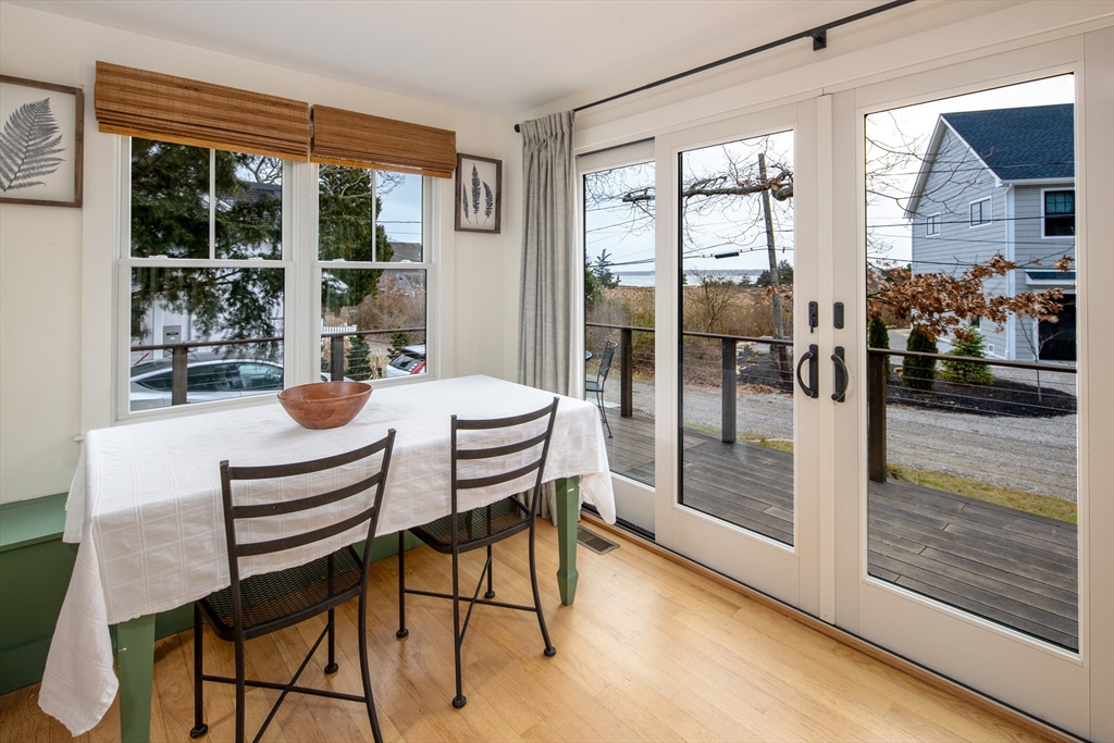 Beautifully renovated architectural home located in The Cedars with expansive water views and deeded beach rights. This 3-bedroom, 2 full bath home was recently renovated by Summer Street Builders with every surface updated with high-end finishes. The 1st floor’s open floor plan has a chef’s kitchen with an island and eat-in banquette, and a wall of glass with sliders opening to a large deck for alfresco dining and stunning water views. This room flows into the family room with additional dining and lounging areas and gas fireplace; and then a living room with gas fireplace and TV area. There’s a 1st floor full bath with shower and a separate laundry room. Head upstairs to 3 bedrooms and a full bath with tub. The primary bedroom has more water views and a staircase that leads to a walk-up attic with the possibility of building out another 900+/- SF of additional living space. A large fenced-in backyard is ideal for gardening, dogs and kids. Nothing left to do but move right in.
