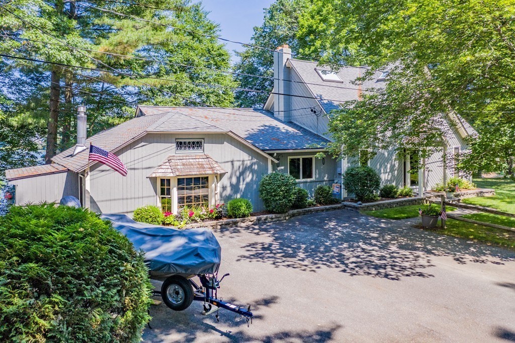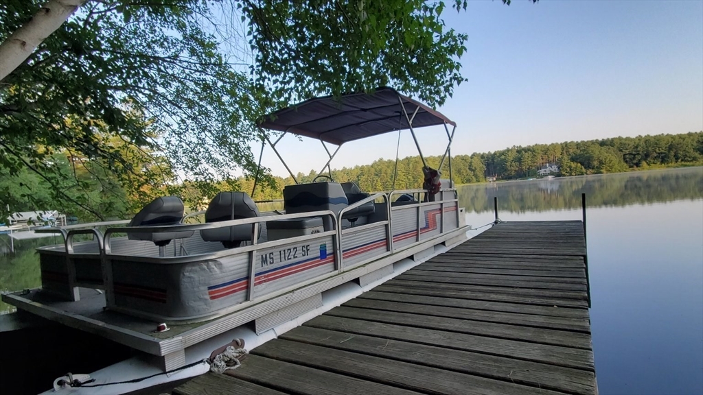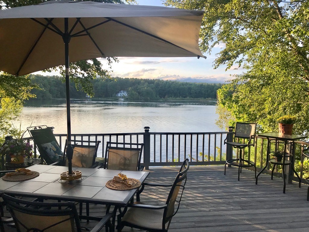 Waterfront living at its best: 200’ of direct water frontage on Hampton Ponds, private dock, expansive deck, and pontoon boat included! The main residence offers breathtaking waterfront views, while a recently fully renovated separate single-level guest house is perfect for visitors or rental income. Take in the views from outdoor sitting areas while enjoying summer boat parades, concerts, fireworks, and sunsets. Private beach access adds even more versatility. A guest house and unmatched waterfront lifestyle make this property truly one-of-a-kind!