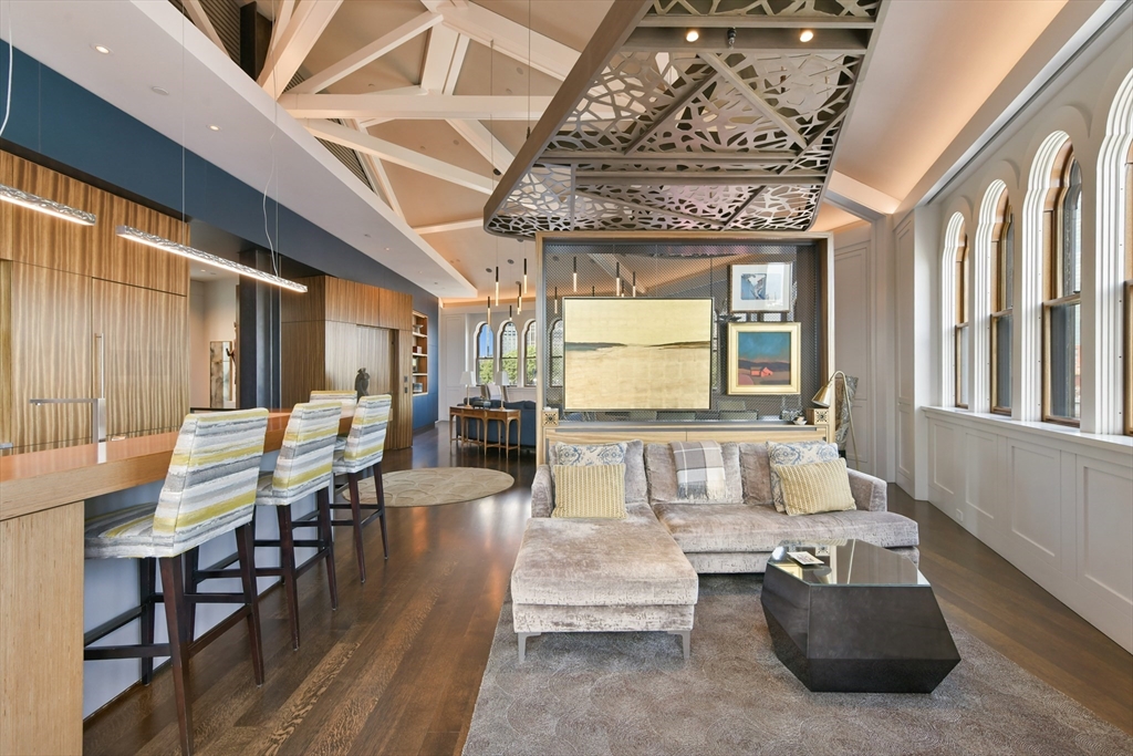 Introducing an opportunity to own a custom-built penthouse set atop the historic 201 W Brookline Street. Spanning two levels and crowned by the building's dramatic cupola, this 3+ bedroom, 3.5-bath home was expertly built by Kistler & Knapp. Offering direct elevator access, and a private lift from the first to the second floor living spaces, this home opens into a proper foyer with abundant storage and then unveils a dramatic double-height living space. The secondary bedrooms, along with two full baths and a proper laundry room complete this level. Stairs lead to the upper level boasting 360-degree views, stunning architectural details and an open floor plan with defined living, dining and kitchen spaces. The primary bedroom suite features a stone-clad bath with walk-in shower and soaking tub, and a large walk-in closet. A separate office/guest room sits off the main living area. 2 full garage spaces complete this one-of-kind home in the heart of the South End.