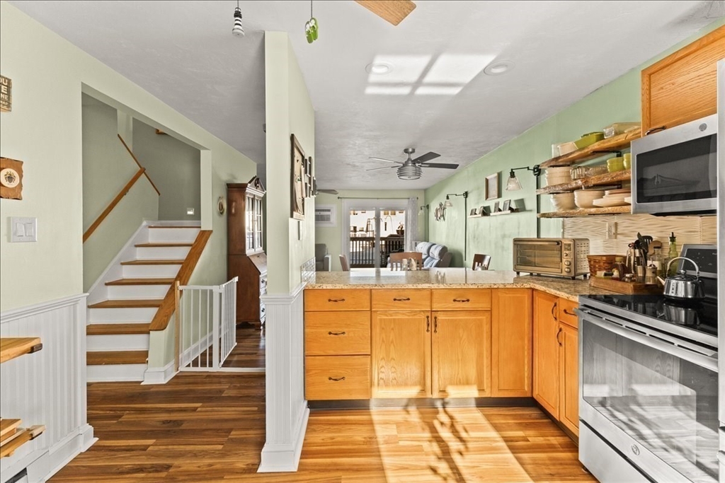 This beautifully maintained townhouse offers an inviting open-concept layout featuring a stylish kitchen with granite countertops and stainless-steel appliances, seamlessly open to the living room—perfect for everyday living and entertaining. Sliding doors lead to a private outdoor patio, ideal for relaxing or hosting gatherings. The home features two generously sized bedrooms, including a primary bedroom with a custom walk-in closet, along with tastefully updated bathrooms. Additional highlights include convenient first-floor laundry and a thoughtful layout that makes this home truly move-in ready. Enjoy low-maintenance townhouse living in a convenient Taunton location!