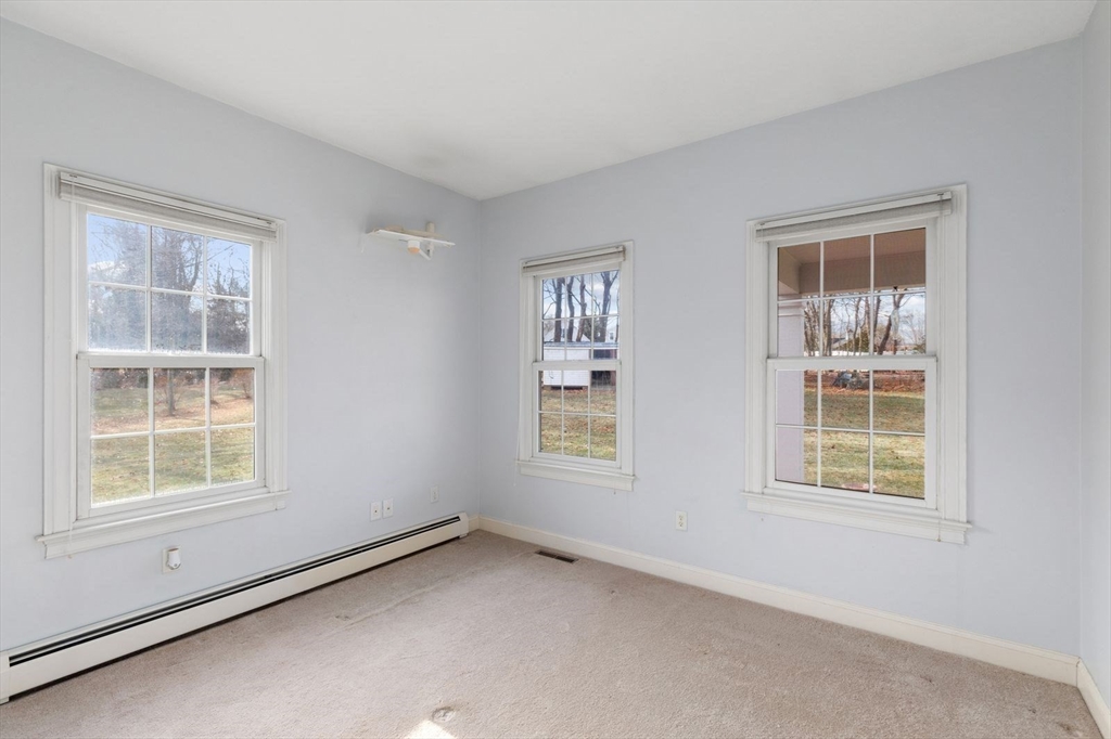 Welcome Home! Stonewall Estates is a small sought after 2 street neighborhood where you'll find this corner lot Burpee Built custom Cape. Enjoy single level living with 3 bedrooms, 2.5 baths, open kitchen/family room with cathedral ceiling & stone fireplace, eat-in area, granite counters, plenty of cabinet storage & slider to the rear deck. The formal dining room could be an in-home office. First floor laundry room with built-in ironing board. The primary suite boasts a cathedral ceiling, slider to the enclosed rear porch, primary bath with double vanity, walk-in closet, tub and shower. Guest bedrooms share a full bath. The second floor bonus room is a great escape for playing pool or watching the game. Your huge back yard features gardens, perennials, grapes, raspberries, outdoor shower & shed w/electricity. The expansive basement includes a pellet stove, brand new furnace & water filtration. Minutes to the Whitman MBTA Station, shopping, restaurants and more. Open Sun 12/21 12-2pm.