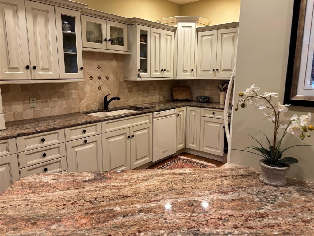 DON'T MISS OUT on this fabulous custom built one owner 3 br condo with a one of a kind floor plan. This end unit has so many unique and thoughtful details, it is sure to delight. Enjoy nicely designed granite kitchen w/ plenty of cabinetry and counter space, under cabinet lighting, ct back splash, counter seating and spacious dining area with French doors that open out to a 3 season room... formal dining room w/ tray ceiling, living room w/ vaulted ceiling, skylights, triple window overlooking private spacious deck and custom bookcases, which flank gas fireplace...other custom features you will love include: 1st floor primary bedroom, privately tucked away with primary bath w/ ct flooring & granite vanity, designated laundry room and custom built desk area. Upstairs you'll find an interior balcony overlooking the living room, 2 bedrooms, both with great closet space and a full bath w/ walk in shower. This unit is a pleasure to show! OPEN HOUSE Sunday 12/21/25 12-2
