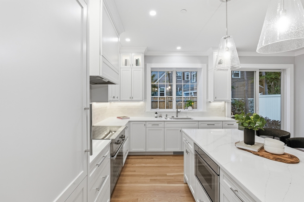 Meriam Hill, thoughtfully redefined, where timeless architectural meets modern refinement. Meticulously designed with organic textures, and bespoke finishes, creating a living experience of exceptional distinction.Located two blocks from the vibrant town center, this boutique condominium offers expansive open concept living. The main level features a chef inspired eat-in kitchen, an inviting family room with fireplace, and a gracious dining area, ideal for both everyday living and entertaining. The second floor is dedicated to privacy and comfort, featuring a serene primary suite, two additional guest bedrooms or flexible office spaces, and conveniently located laundry. Thoughtfully designed outdoor space provides the perfect setting for relaxation. Additional highlights include two-car heated garages, generous storage, and the option for an in residence elevator. Every detail has been carefully considered to deliver modern comfort, convenience, and understated luxury.