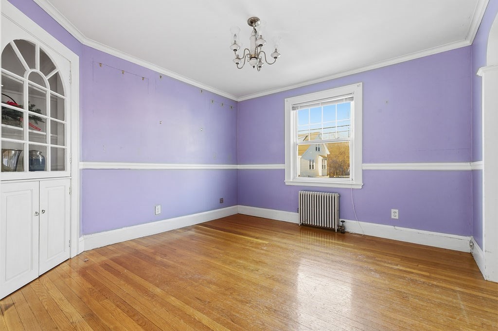 This two-bedroom colonial is well located in Wollaston, offering convenient access to the highway, Wollaston T Station, E. Milton, & nearby amenities. While listed as a two-bedroom home, the layout is spacious and includes a large living room with an adjoining sunroom. The basement includes a semi-finished room with a large window that could potentially serve as a third bedroom. A galley kitchen provides ample cabinet and counter space and is ready for customization. Adjacent to the kitchen, a dining room features a built-in hutch along with a convenient half bath. A door off the kitchen leads to the back deck, offering easy access to the yard for outdoor enjoyment. Upstairs, both bedrooms are generously sized and can comfortably accommodate king-sized beds and additional furniture. An updated full bathroom completes the second level. There is additional storage space in the basement. The heating system less than 10 years old. Located in a desirable neighborhood, this is a great value.