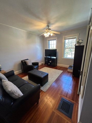 Expansive furnished 1Bed/2Bath/Den duplex on the 3rd and 4th floors of a beautifully crafted 1909 three-family home, located in the heart of vibrant Roslindale. monthly rentals, this unique residence seamlessly blends historic charm with modern comfort and has been lovingly restored over the past 30 years. The elegant staircase and stained-glass windows set the tone, leading you to a bright and inviting living space. The sun-drenched living and dining rooms feature an antique chandelier, creating the perfect atmosphere for entertaining or relaxing. The spacious eat-in kitchen with a pantry makes cooking and baking both easy and enjoyable.The highlight of this home is the 4th-floor loft bedroom—a tranquil retreat boasting seven skylights, a dedicated desk area, exercise space, and an en suite bathroom. It’s the perfect sanctuary for work, rest, and rejuvenation. Lessee Pays A Fee for Leases less 28-90 Days