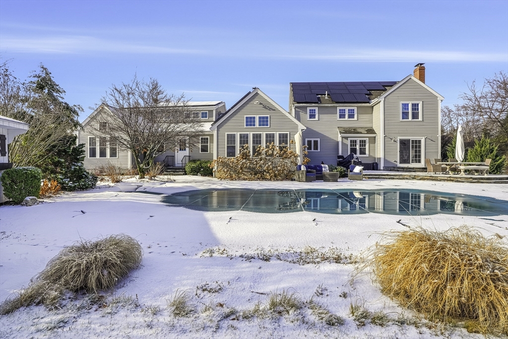 Refined elegance meets resort living. Set in a highly sought-after neighborhood abutting Lake Whitehall, this exceptional residence blends luxury, comfort & lifestyle. A welcoming farmer’s porch w mahogany decking introduces the beautifully designed kitchen featuring mission-style cabinetry, new quartz countertops & backsplash & new flooring - flowing seamlessly into expansive dining & family rooms w walls of windows, wet bar & wood stove—ideal for entertaining & game days. First floor also features a serene bedroom suite, music & living rooms & private home office w built-ins. Upstairs offers 3-5 spacious bedrooms & two freshly renovated spa-inspired baths. An 800 sq. ft. bonus room above 3-car garage provides flexible space for guests, au-pair, fitness, or media. Enjoy a private oasis w a heated inground pool, new travertine patios & a flat backyard! Newer septic, heat pumps, roof & $60K owned solar system! Top ranked schools, I495/90, commuter rail, trails & dog park nearby!