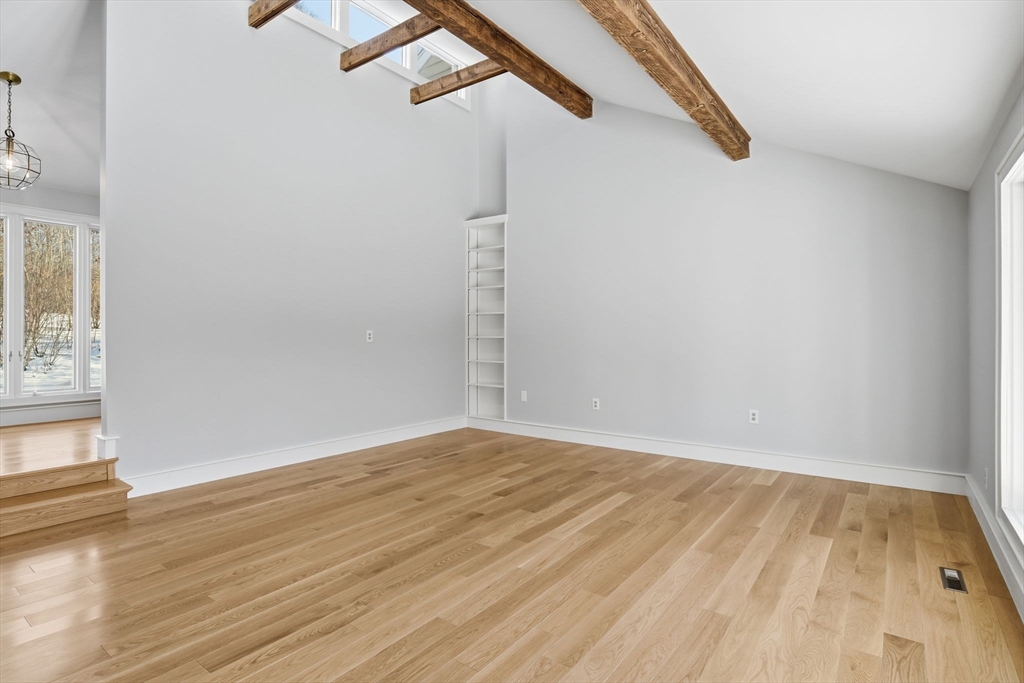 This spectacular home was built in the 70's and retains it's original vibe, but has gone though a complete, custom remodel making it feel like new construction. If you're looking for a truly elegant home, perfect for entertaining or just enjoying quiet privacy this is the one for you. The living room welcomes you with its soaring vaulted ceiling, a feature that amplifies the sense of space and light, while the beamed ceiling adds a touch of rustic charm and character. A center, stone fireplace is the focal point for both living and the dining room. Stunning new kitchen with a one of a kind center island by Custom Wood Design is the gathering spot here. The Main bedroom with spa like bath is the perfect retreat. Walk out basement with 1/2 bath offers potential added living space, 2025 roof & driveway too! Everything has been done for you, just pack your things and make this one your own. Set on 5 acres of natural beauty and tranquility this is the perfect home to relax and recharge