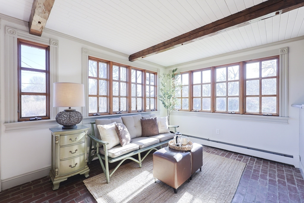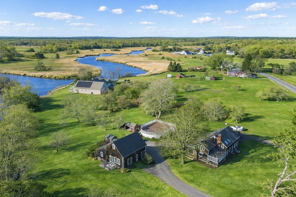A home filled with country charm, this quintessential modern farmhouse blends timeless character with modern amenities. The updated kitchen features stainless appliances, a center island with range hood, and a peninsula open to a sun-filled dining area—perfect for a farmhouse table overlooking the private apple orchard, riverfront views, and pool. A stunning curved staircase anchors the double living room, while exposed beams add warmth to both the living and family rooms. The family room offers a fireplace with wood insert flanked by custom shelving. A charming mud/sitting room welcomes you with soft brick floors and beautiful natural light. A first-floor primary suite allows easy one-level living, with additional bedrooms, and a bonus room with skylights upstairs—ideal for guests. The barn is a true showstopper with soaring ceilings, a bar, and endless possibilities. Enjoy the 40x12 covered porch-all set on 2.48 acres bordering Rocky Run River—perfect for kayaking, fishing and more.