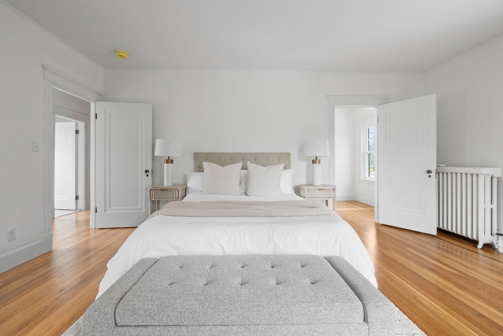 Renovated Stately Colonial with the charm of the old & the updates of the new. The gracious Foyer opens to the Front to back Fireplace Family Room w/Coffered Ceiling & wet bar all open to the stunning White kitchen w/Gas Cooking, Stainless Steel Appliances, pantry, Quartz White Countertops Stream line windows making this home very bright & inviting. Eat-in Kitchen area that is surrounded by windows w/access out to deck & overlooking the stunning fenced in lot. The Dining Room is located off the kitchen w/access to Wet-Bar ideal for entertaining! First Floor Library is tucked away & private surrounded by windows. The Second level consists of three bedrooms & two Full Bathrooms; The Primary suite w/Full White Tiled Bathroom has an oversized shower. The Third Level w/Two additional bedrooms & built-in has access to Full Bathroom. Two car detached Garage is charming wi/extra Storage. Many fabulous features throughout this home. Minutes to All Major Rtes, Whole Foods,Starbucks, Dining& More