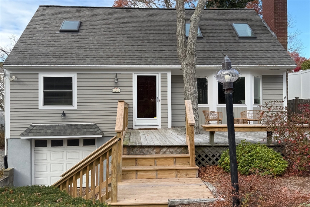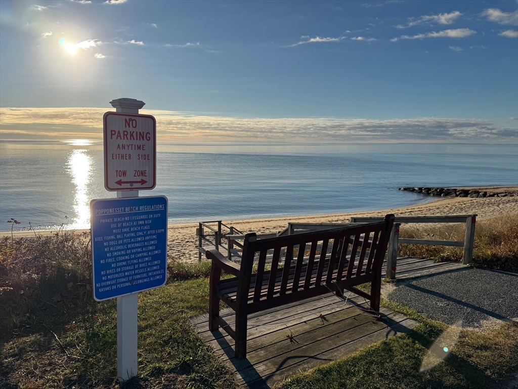 Welcome to Popponesset, a beloved Cape Cod community, with the opportunity to live just a 3 minute walk to your private deeded beach! This sunny 3 BR/2BA home has been meticulously maintained & tastefully updated to with features like central heat & A/C for seasonal or year round enjoyment. The first floor includes an open skylit living room w/ fire place, kitchen/dining area w/ newer cabinets & quartz countertops, and primary bedroom w/ full bath. LVP flooring was added to the main living areas. Sliders open to an expansive new deck & convenient outdoor shower. The carpeted upper level offers 2 bedrooms, full bath & bright loft. The basement adds additional storage space & expansion potential. The Popponesset Beach Association & Poppy Marketplace provide wonderful family activities. Nearby find South Cape Village & Mashpee Commons w/ many shops & restaurants. Come and create your own special memories & traditions. Buyers & Agents to verify all information contained herein.