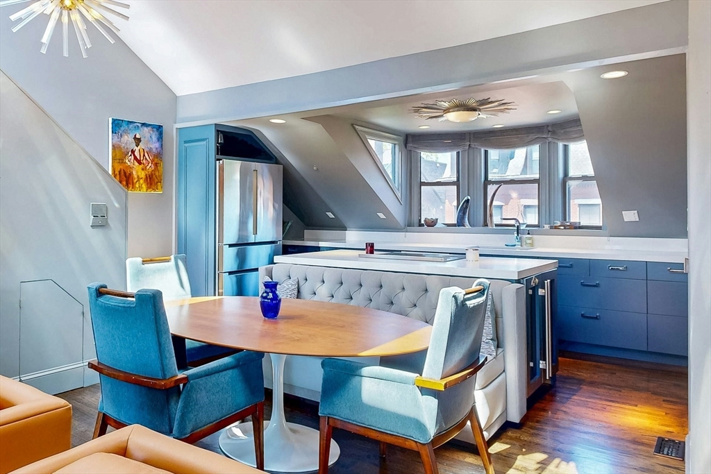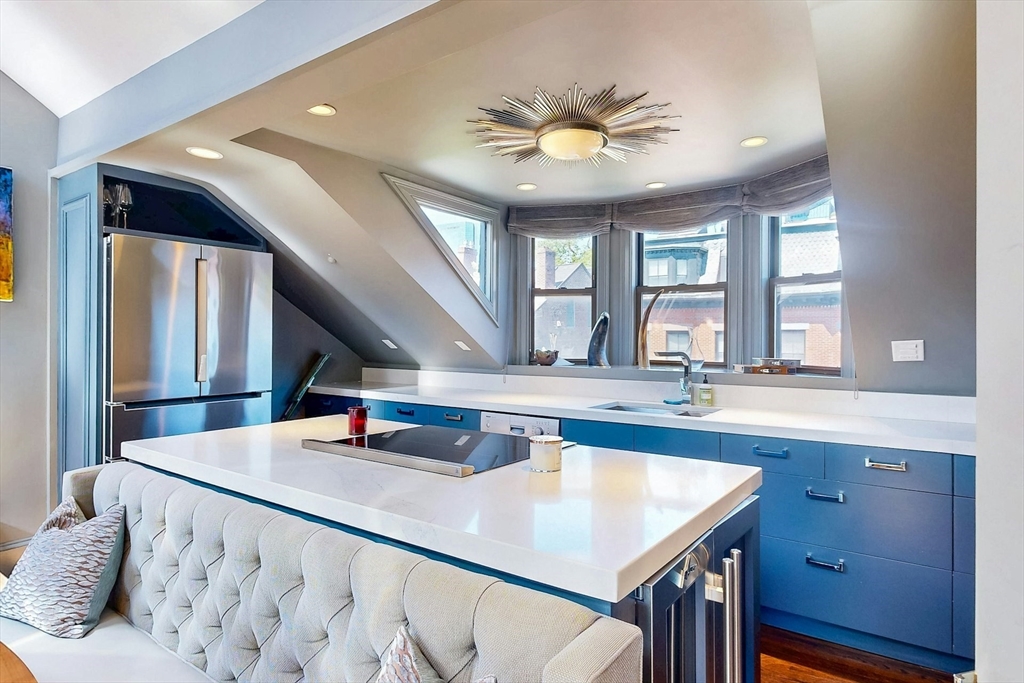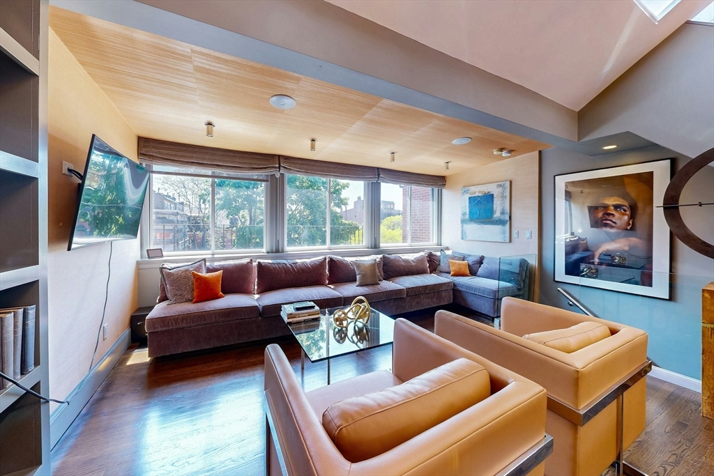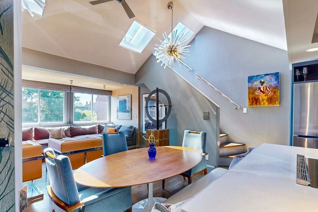 WOW Fully Furnished. Avail 6mths plus. Gorgeous renovated 2 bedroom and 1.5 bath Penthouse duplex - featuring a sun splashed open living/dining room with dramatic vaulted ceilings and a wall of windows with city and lush green tree top views. Entertain in the delightful cooks kitchen with quartz counters, custom cabinets and excellent storage. Accents include skylights, bay window with Prudential views, all modern finishes and designer lighting. Experience comfort in excellent size bedrooms, custom closets ,and a bonus walk in closet. Enjoy the amazing city views from your 175 sq. ft. private roof deck. This beautiful urban oasis for community gardeners is also a top location steps to everything- including shopping, cafe's, Sowa art market and with a walk Score of 94, this location is a Walker’s Paradise so daily errands are a breeze. This neighborhood home to nearby parks & world-class public transportation