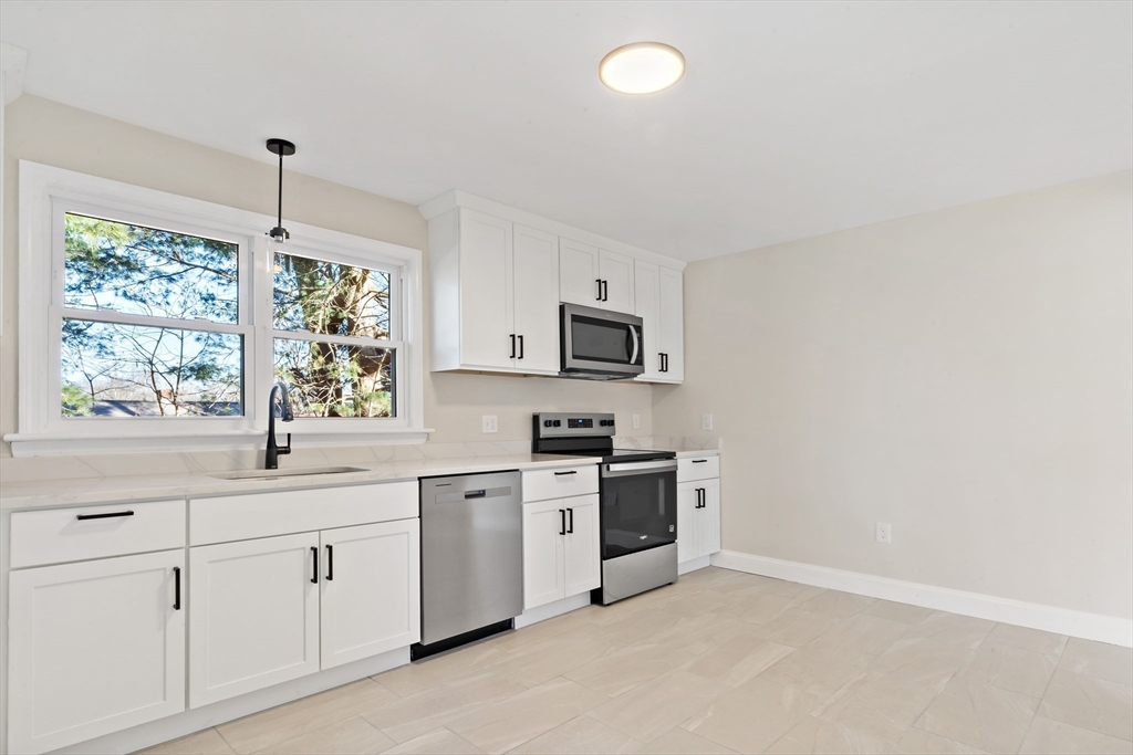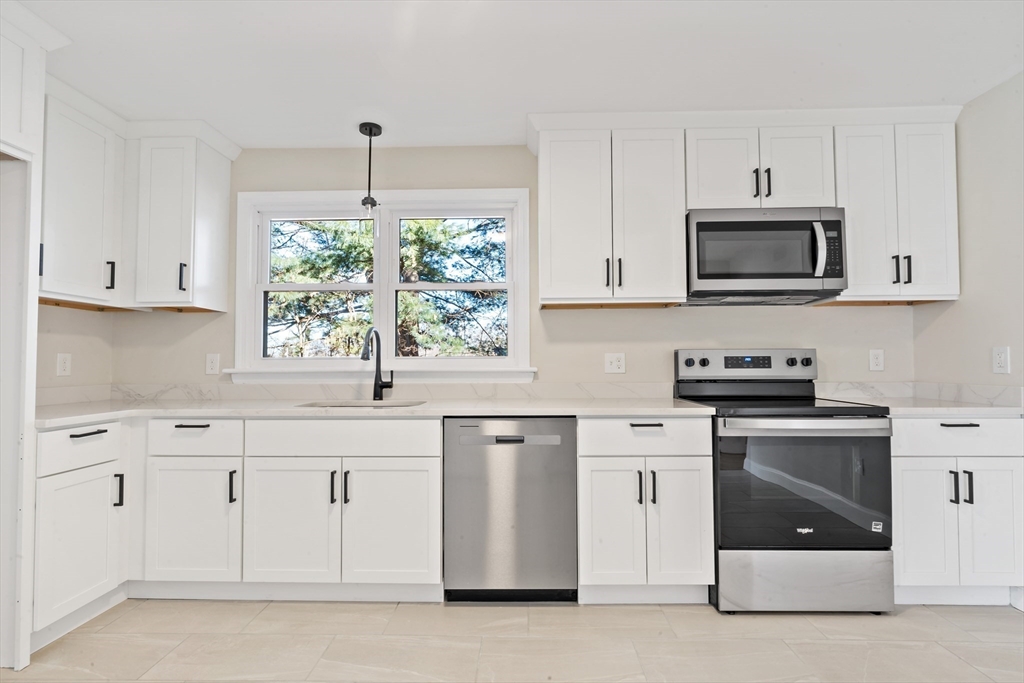 Newly renovated ranch-style home in North Tiverton offering easy single-level living. This 3-bed, 1-bath property features a brand-new kitchen with quartz counters and tiled floors, a fully updated tiled bathroom, and new windows throughout. Newly surfaced hardwood flooring runs throughout the home, complemented by great-sized closets and a tiled mudroom for added convenience. Additional highlights include baseboard heat, fresh interior and exterior paint, an attached garage, and a full basement offering a blank slate for future use. A true move-in-ready home with modern updates and a clean, timeless feel.