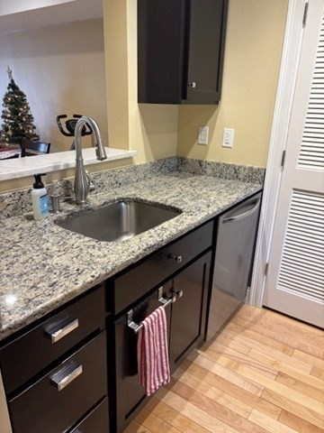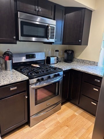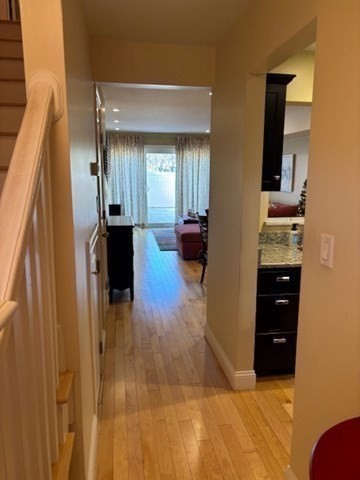 Wonderfully updated 2 bedroom one a half bath home. Updated with hardwood flooring throughout, including the staircase. Kitchen has been remodeled with stone countertops new cabinets and appliances. The upstairs bath has a updated tiled shower and tub with glass doors and new vanity. The slider off the living room has been replaced and a brand-new stone patio area. Don't miss out the updates have been done. This unit is truly move in ready.