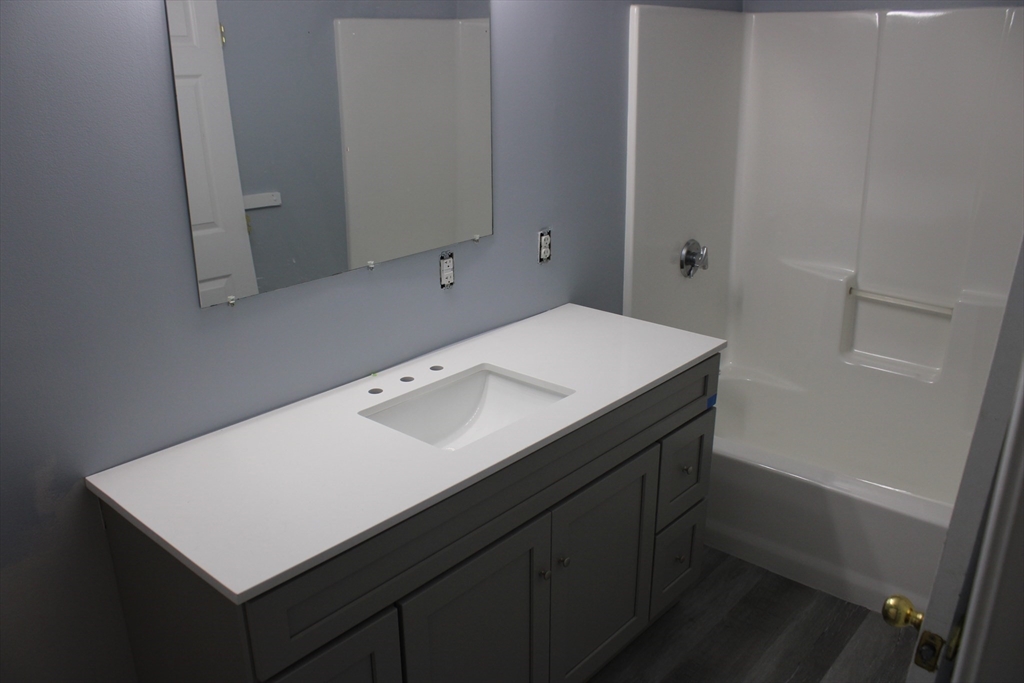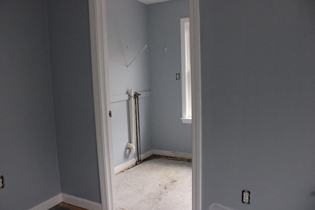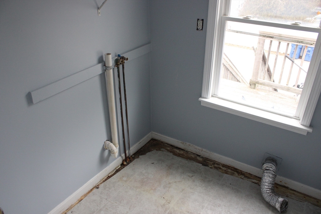 3 bedroom cape style rental. 2 bedrooms up, 1 bedroom 1st fl. 1st fl laundry. newly renovated. new washer/dryer, refrigerator and stove. new paint and floors. large rear deck, 2 parking spaces behind the building. fireplace does NOT function. full basement, interior access