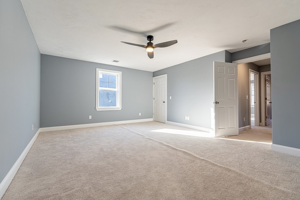 Welcome home to this beautiful new construction Colonial located in Taunton. The first floor features vinyl flooring throughout and offers an open-concept kitchen and living area, along with a full bathroom and sliders that lead directly to the backyard. The kitchen showcases white shaker cabinetry, stainless steel appliances including a double-oven refrigerator, dishwasher, gas range, and a center island ideal for entertaining. The second level offers four bedrooms, including a spacious primary suite with a private full bathroom, plus an additional full bathroom with conveniently located laundry. The basement is unfinished but rough-plumbed for a bathroom, offering endless possibilities for future expansion and additional living space. Additional features include a two-car garage, central air, gas heat, town water, town sewer, and close proximity to shopping and major highway access.