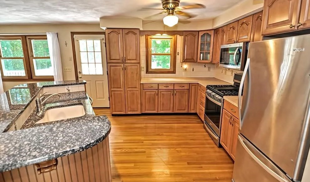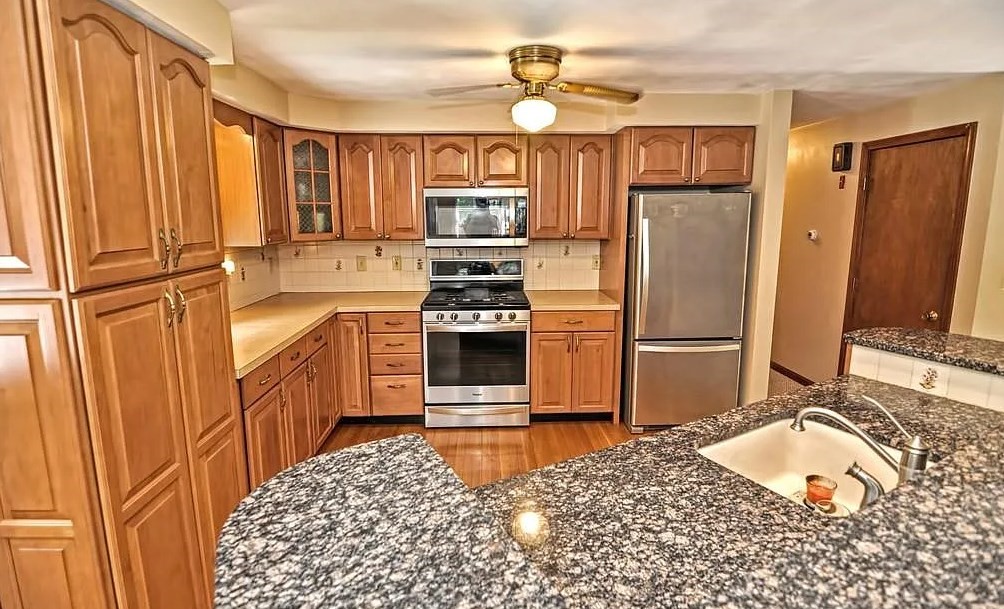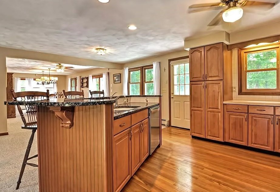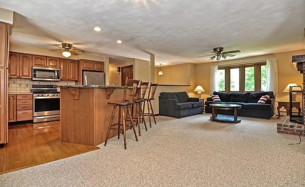 Spacious 4-bedroom, 2 full bath home set on a generous .8-acre lot with many desirable features and recent updates. The home offers a finished lower level with a working fireplace and a cast iron wood stove, providing flexible living and entertaining space. A newer gas heating system with forced hot water heat has been installed, along with plumbing updates.The kitchen features a center island with granite countertop and a gas stove, and appliances will remain with the property. Windows are in good condition. The home includes city water and a private septic system that is regularly maintained and pumped every two years.An addition adds extra square footage to the home, complemented by a large rear deck overlooking a fully fenced 40 x 70 backyard. Additional highlights include a two-car garage, irrigation system for the front lawn with 10 zones, and no known foundation issues.Please note: roof replacement is needed.
