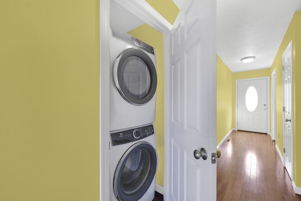 Welcome home! This immaculate 2 bedroom, 1.5 bath Southview condo offers comfort, style & low maintenance living! The 1st floor features gleaming hardwood floors throughout and an open-concept kitchen, dining, and living area, ideal for everyday living and entertaining. The kitchen is appointed with granite countertops, stainless steel appliances, island seating, dining area, & a slider leading to private deck where you can submerge yourself in nature. A convenient half bath and first-floor laundry complete the main level. Upstairs, you’ll find two generously sized bedrooms, a spacious tiled full bath, and a versatile flex space at the top of the stairs, perfect for a home office or reading nook. Additional highlights include an attached one-car garage, central air, gas heat, and a large walk-out basement offering excellent potential for future finishing. A short drive to MA Pike access, local restaurants, and shopping - this is the ease of life you've been waiting for!
