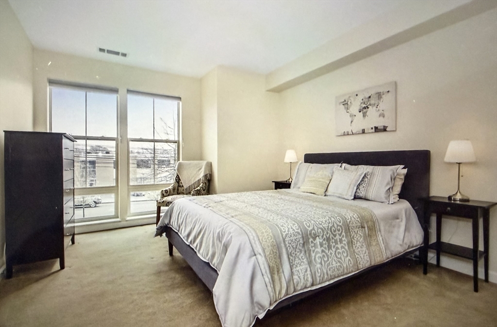 Located in desirable Repton Place. Move-in ready, spacious, 2 bed, 2 full baths, 2nd floor corner unit. All rooms freshly painted. Custom rosewood floors, walls of windows and a private balcony. Open concept living for kitchen, dining and living room area. Modern kitchen with granite countertops, SS appliances and a pantry. En suite bathroom with double closests in the primary bedroom. Walk-in closet in sizable second bedroom. LG washer/dryer in unit laundry room. Attached garage with 2 deeded parking spots. Extra storage on same floor. Professionally managed complex with landscaping and snow removal included. Access to 24/7 fitness room. Steps to the Charles River bike paths. Perfect for commuters. Across from the Star Market. Minutes to Arsenal Yards and Watertown Square.