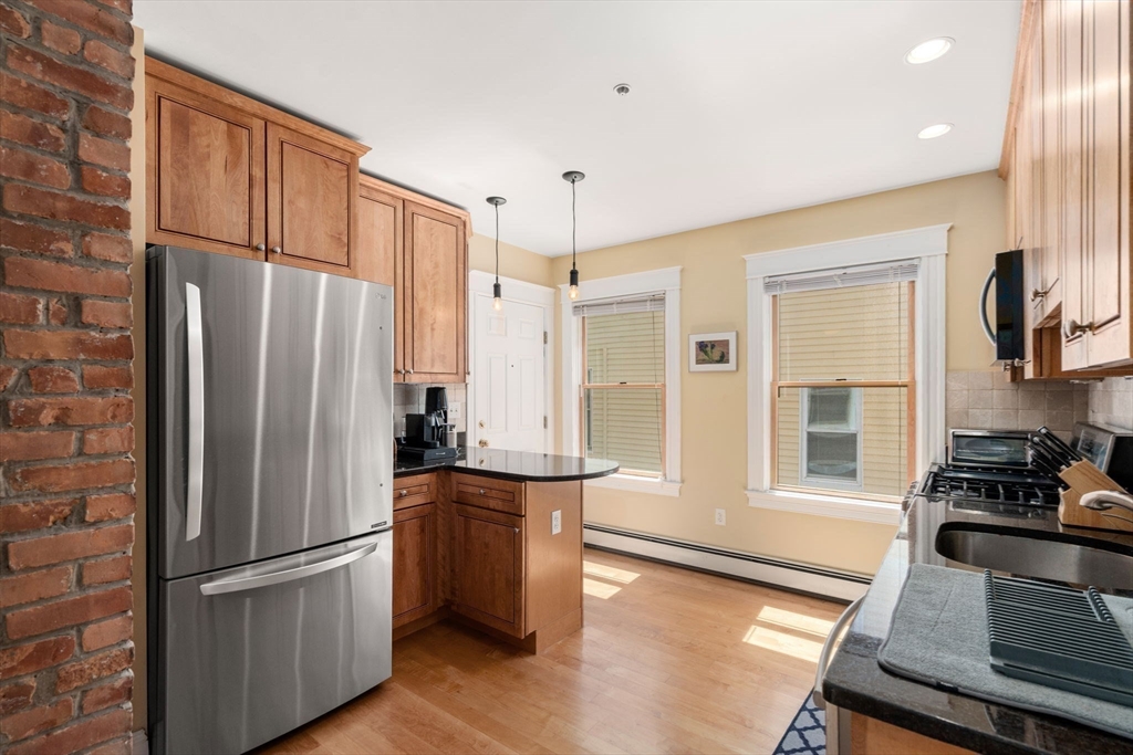 Modern 2BR/2BA Near Porter & Davis – Parking Included. This bright second-floor apartment features gleaming hardwood floors and a modern kitchen fully equipped with a dishwasher and disposal. The layout includes two full bathrooms and offers two private outdoor spaces, including a rear deck and a front deck with beautiful sunset views. Located on a quiet, tree-lined street near two playgrounds, the home is just an 8-minute walk to Porter Square and 12 minutes to Davis Square. Rent includes one off-street parking spot and access to in-building laundry. Extra storage in basement.