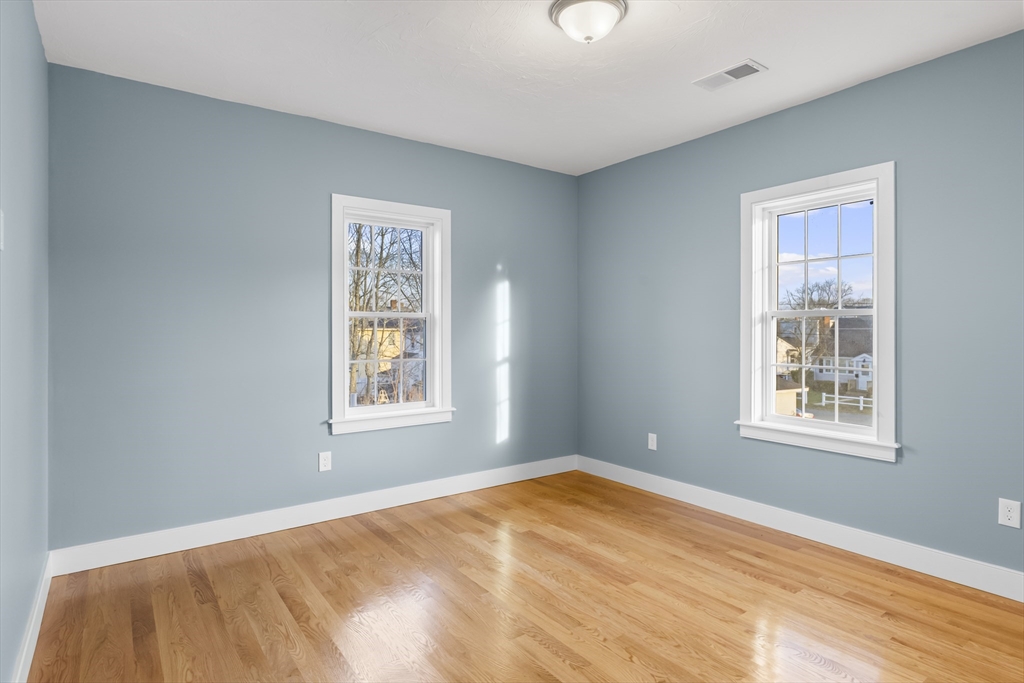 Welcome home to this beautifully reimagined 4-bedroom, 2.5-bath Colonial, tucked away yet ideally situated on a residential dead-end street in Brockton. Fully renovated inside and out, the home features impressive and extensive 2023 upgrades, including redesigned kitchen and bathrooms, all-new Harvey windows, new roof, gas heat conversion, new hot water tank, and refinished hardwood floors on both levels. This sun-filled, spacious home offers central air and an open, inviting layout. The first-floor primary suite is a private retreat with a stylish en-suite bath featuring a custom glass stand-up shower with bench. Neutral paint tones in every room creates a warm, welcoming, and modern feel. Outside, enjoy a two-car garage, wide driveway, oversized fenced yard, and a lovely patio, perfect for entertaining, relaxing, or creating your own outdoor oasis. Move-in ready and thoughtfully finished, this home offers comfort, style, and convenience.